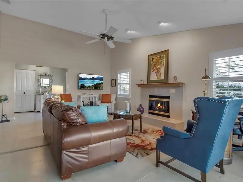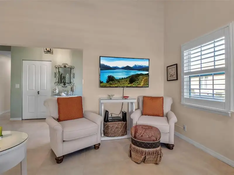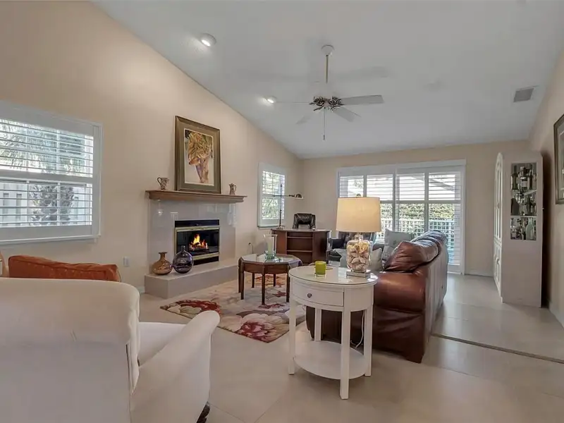 Come see and decide to stay at this 3 bedroom/2 bath/ 2 car garage Villa in Golfing community with a Semi-Private Golf Club right down the street This is a well-maintained home, centrally located at Turnberry Woods just off Sarasota Bay is an ideal place for any age or family to call home. (Walking distance to IMG Golf Club, BTC Tennis Club, State College of Florida (SCF) or a 15 minute short backroad drive to the beautiful Gulf Beaches) Do not forget to ask about Detwiler's Market located just a short distance around the corner.So many updates:The first thing you will notice when you enter the home is the Gorgeous Contemporary Front door - a statement in itself installed in 2022. The Main Roof was replaced and the Exterior freshly painted in 2022. The Florida Room off the kitchen had the roof and screening replaced in 2019. Hurricane rated windows and sliders were installed in 2021 and Plantation shutters installed through-out the home in 2019. The kitchen was updated starting in 2017 with Granite countertops. The stainless range hood and granite backsplash serve as the main focal point for the entire kitchen. All Kitchen appliances were replaced in 2023, and a large Farmhouse Sink and Wine Refrigerator were also added. Large porcelain tiled floors throughout entire home, wood Fireplace serves as a focal point in living room. Formal dining area sits aside the tropical atrium boasting a view of orchids and tropical plants. The bathrooms were updated 2017-2018 with walk in showers, The Washer and Dryer were replaced in in 2024.Outdoors, the Trex sundeck for grilling and entertaining at the back of the home were installed in 2020 for the ultimate low maintenance and weather protection - Grilling is allowed!! Beautiful Paver walkways added in 2018. A full sized screened garage door was added for garage ventilation and privacy. There is a wonderful outside sitting area in front of the home which provides a place to drink your coffee in privacy, or move to seats which allow you to greet your neighbors or watch the beautiful Gulf Coast sunsets. There are Lightweight hurricane shutters for all weather protection.2 pets with no restriction on weight are allowed, there is no wait to lease if that fits your plans, and the minimum 3 months 2x/year helps the community maintain its neighborly feel... If you want to take a swim, the community pool is right out back!Ask about the 1 FULL YEAR HOME WARRANTY Association Fee covers Roofs, Painting, Cable, Internet, Garbage, Recycling, Yard waste, Pool, lawn Maintenance and pest control, pool maintenance, insurance. Fee will be reduced in 34 months after loan taken by Association to replace roofs is retired.