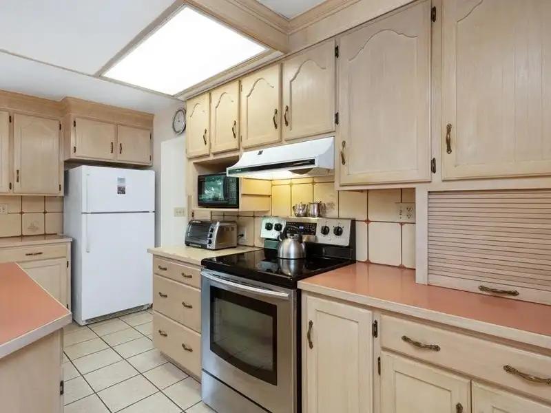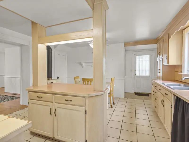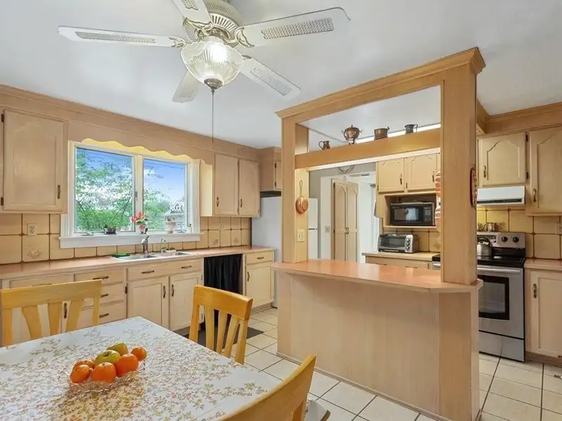 - Kitchen with Pickled Oak cabinets and breakfast island