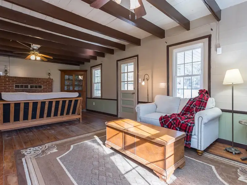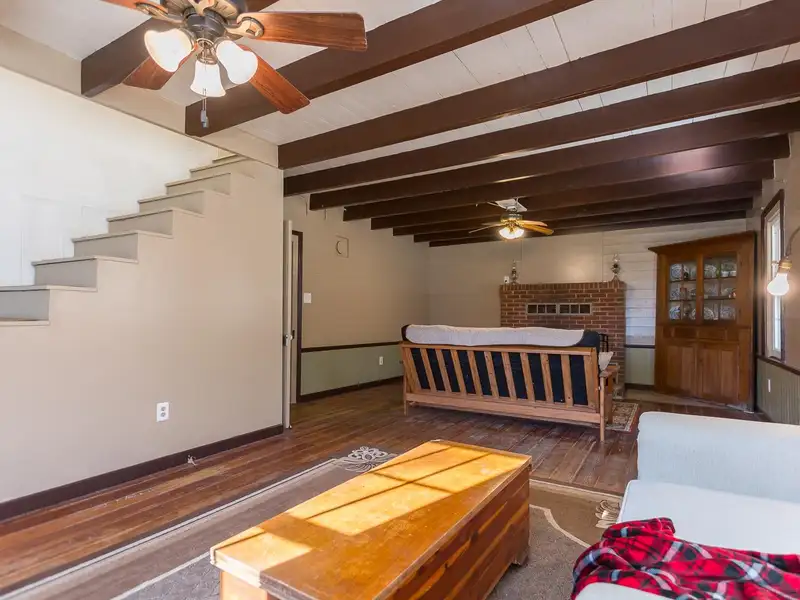 - Wood-burning fireplace in cabin