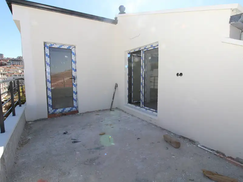 The brand-new apartments in Cankaya are available in 1-bedroom and 3-bedroom duplex options. They feature a living room, separate kitchen, open-plan kitchen, shared bathroom, en-suite bathroom, terrace, laundry area, and balcony. The apartments are equipped with high-quality features, including a steel entrance door, a built-in kitchen set (3-piece), a cloakroom, a combi boiler for heating and hot water, an underfloor heating system, laminate flooring, and tiled floors in wet areas.