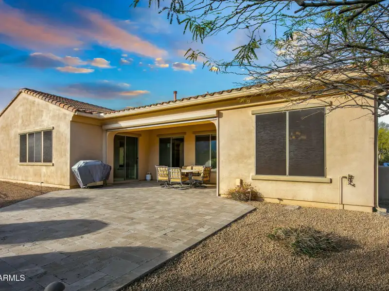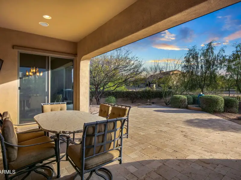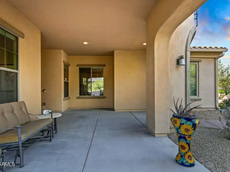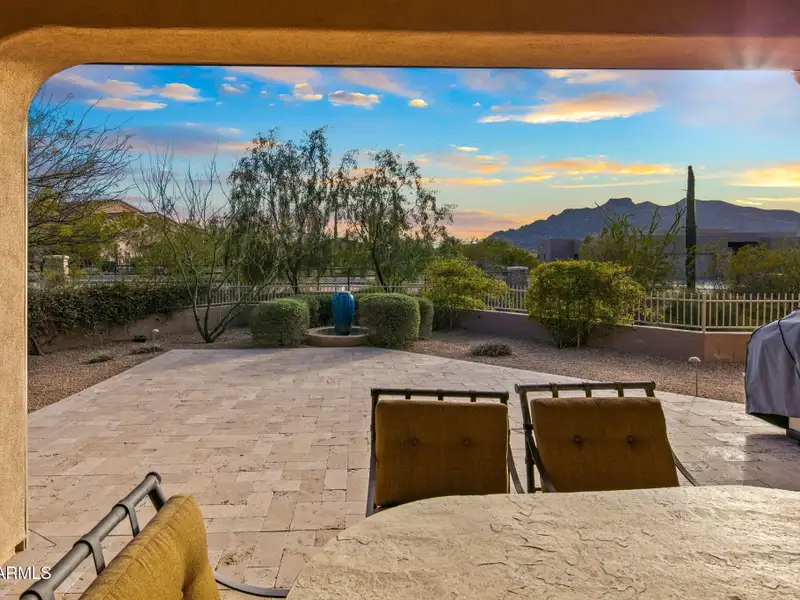 - Covered back patio with mountain views