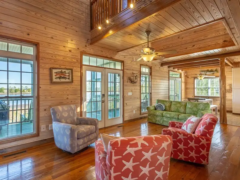 Seller says SELL! Call for your appointment today. This custom-built home offers a unique blend of luxury and nature, located in the heart of Sportsman Paradise along the Carrabelle River. Nestled in a protected upriver area, it offers direct access to the Gulf of Mexico, providing both serenity and adventure at your doorstep. Enjoy breathtaking waterfront views spanning across the Carrabelle and Crooked Rivers and extending into hundreds of acres of the pristine Tates Hell Wildlife Management Area. Whether you're a nature enthusiast, angler, or simply someone who enjoys scenic vistas, this home is perfectly situated. The interior design showcases the region's natural beauty, with stunning cedar walls, oak and pine beams, and cherry and walnut trim, adding a rich, earthy aesthetic to the living spaces. The layout is equally impressive. The first-floor master suite provides a private retreat with sweeping views of the water. Upstairs, two additional ensuites offer comfort and privacy for family or guests. Additionally, the children's lookout room is a charming feature, complete with built-in bunks, making it the perfect spot for young adventurers. The dock features water, electric, fish cleaning table and 10K lb. lift fitted for a 32' boat Fully furnished and move-in ready, this home offers an exceptional opportunity for those looking to experience the best of both waterfront living and wilderness at its finest.