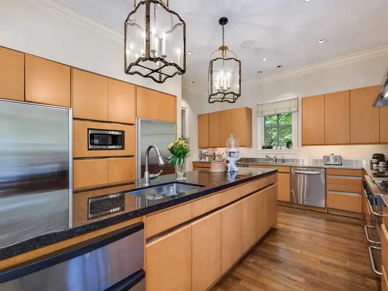 - Hardwood and slab marble floors