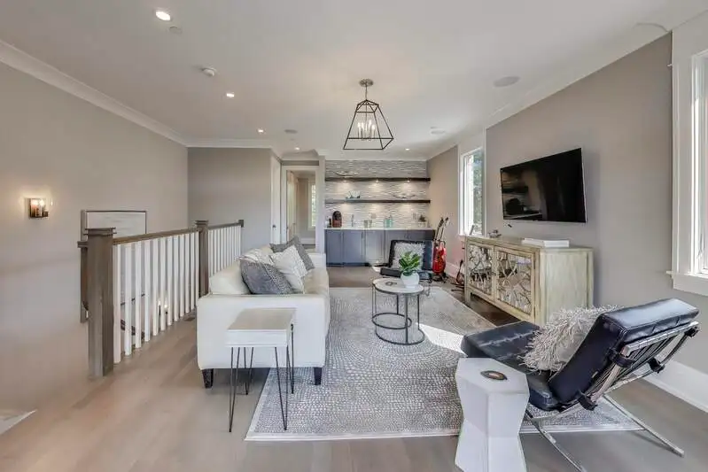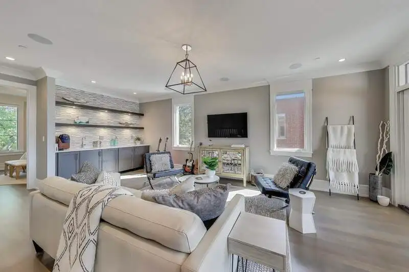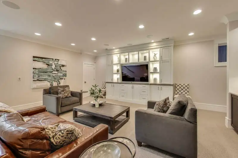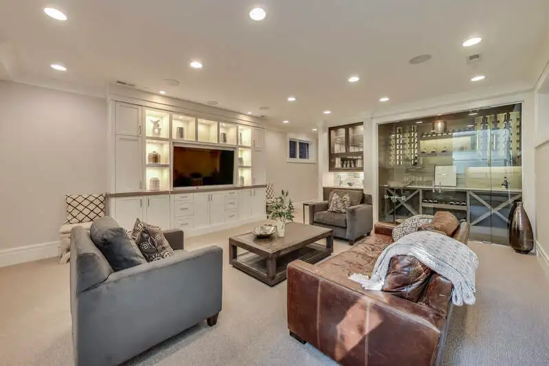 - Expansive lower-level recreation room with wine cellar