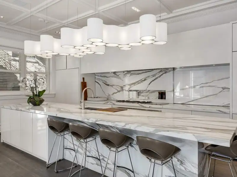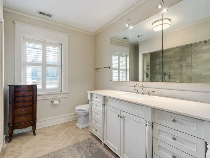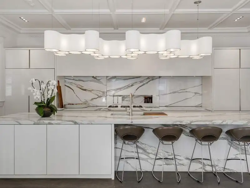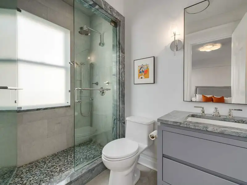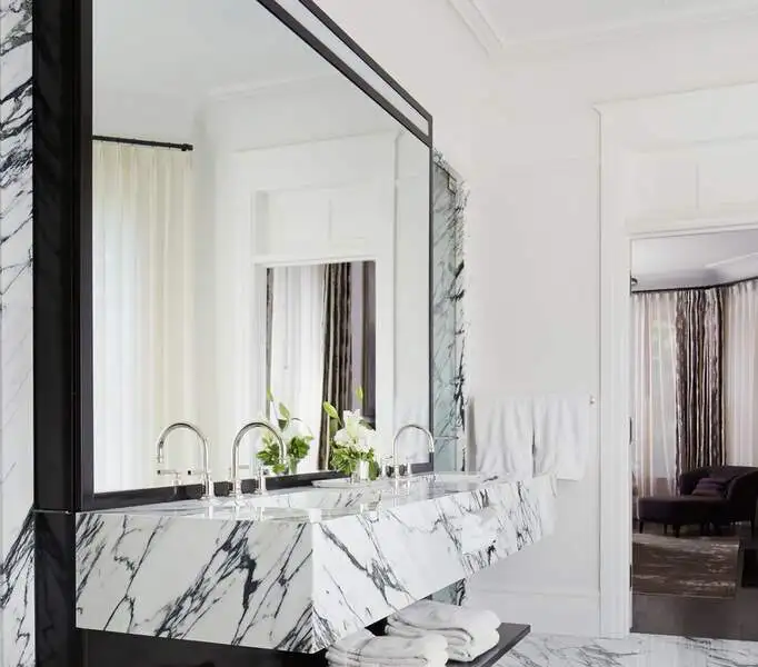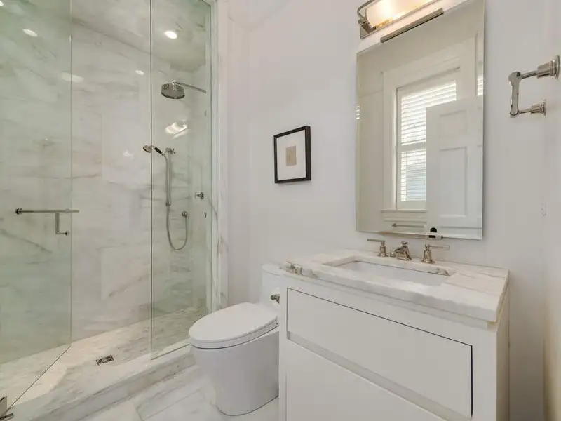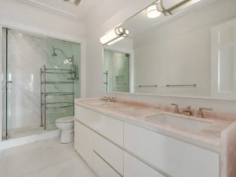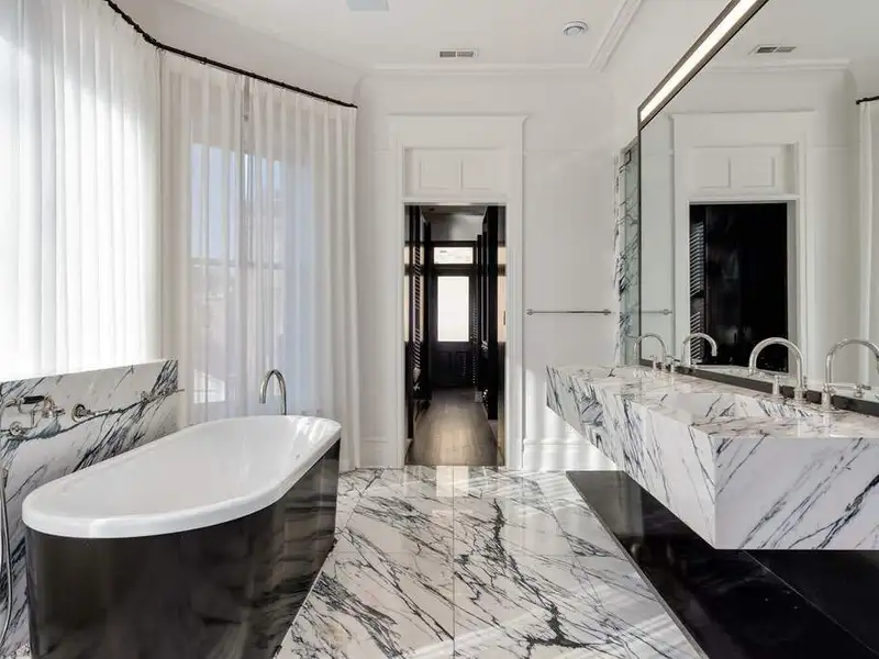 - Ultra-luxe primary bathroom with marble