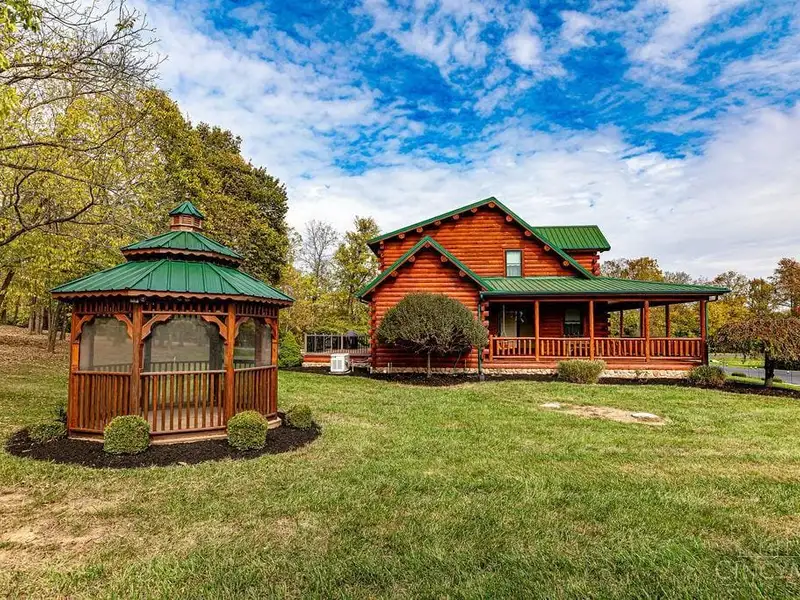 1st Time Offered-Dream Property! Drive Back The Gated Entrance to View This Stunning Custom Two-Story Log Home on 5 Acres! This beautifully Crafted Log Home offers 3 bedrooms, a spacious two story great room with woodburning fireplace, 2.5 bathrooms, dining room, a Custom Once of A Kind Kitchen. Enjoy extra living space with the finished lower level and large loft area overlooking the great room. The 1st Floor Primary suite features an adjoining full bath for convenience and comfort. A mudroom and laundry room add to the home's functionality. Step outside to your own private oasis featuring a beautiful wooded backyard, Fiberglass Inground Pool W/Auto Cover, Fire pit area + Huge 60x40 Insulated and Heated Barn For All Your Toys!. Other custom features include Whole House Generator,Barn Workshop, Large MotorHome Parking Pad w/HookUp,Pet Fence, Front Irrigation,Geothermal Heat/AC, WalkOut LL, and So Much More!! This property truly has it all!
