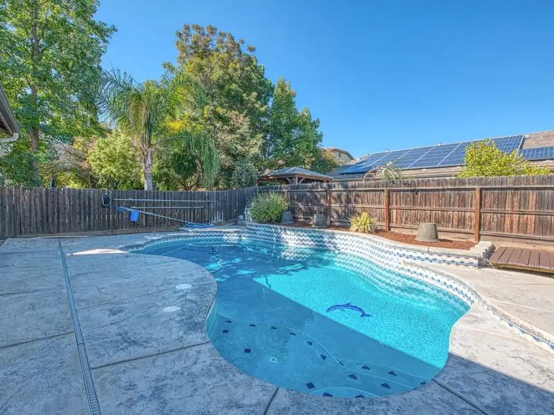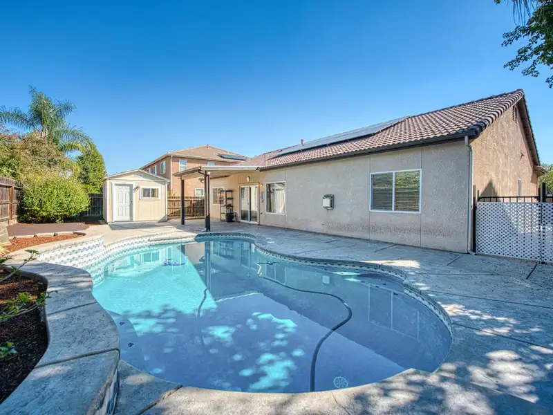 - Low-maintenance backyard with pool