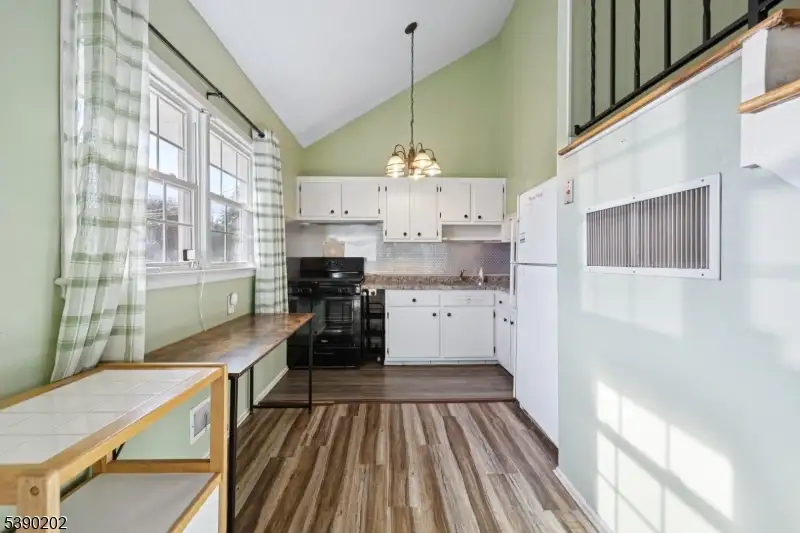 - Kitchen opens to dining area