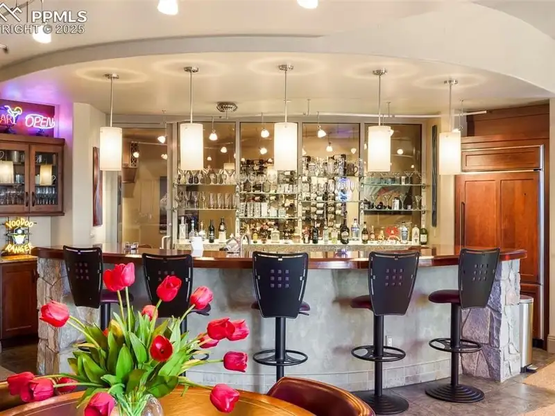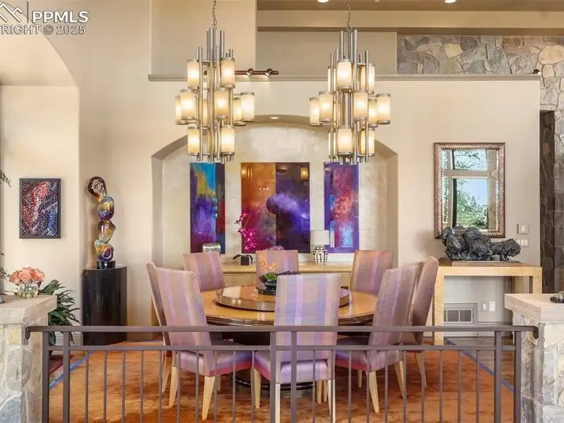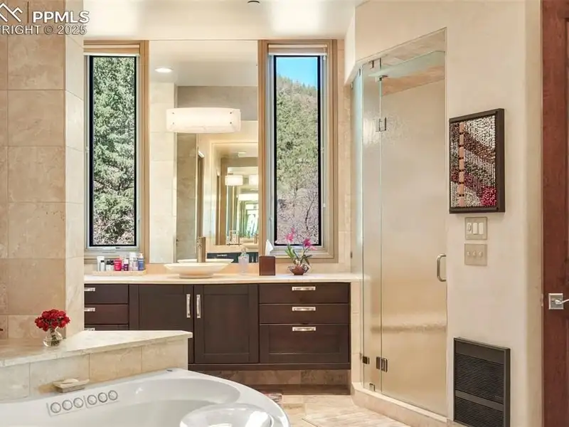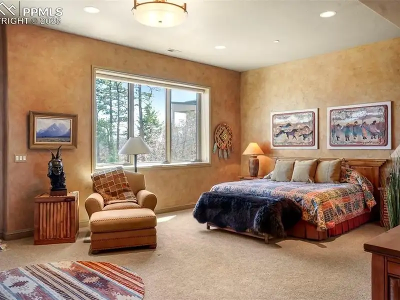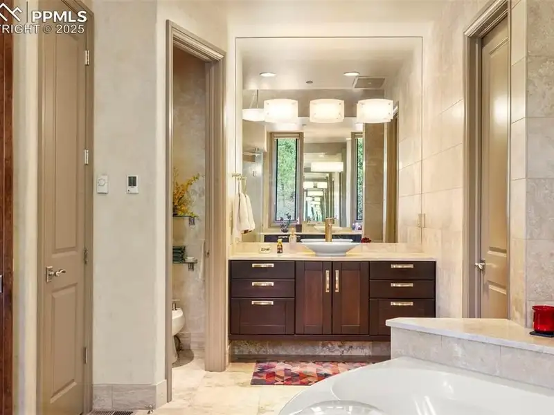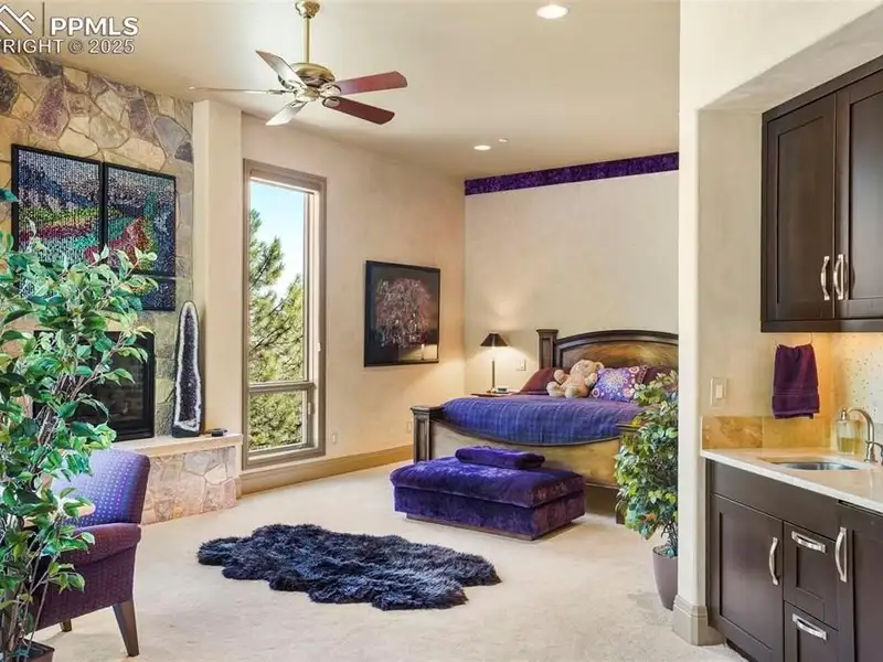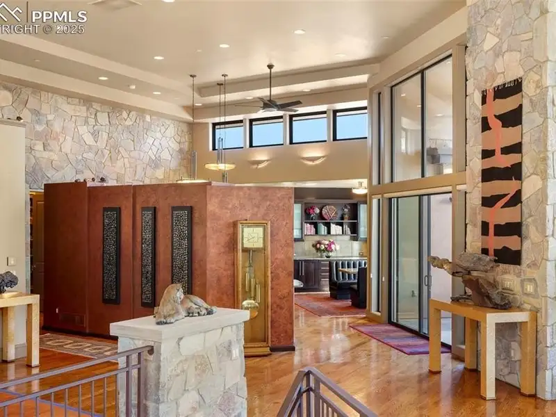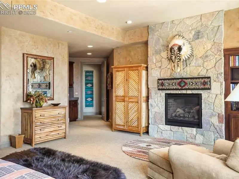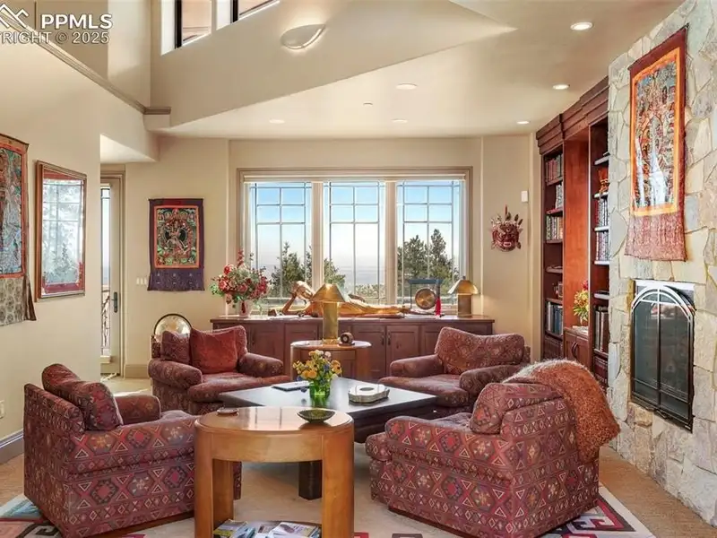 Tucked away in a serene cul-de-sac, this exceptional property offers complete privacy, tranquility, and breathtaking, unobstructed views. A magnificent blend of contemporary sophistication and timeless charm, this extraordinary residence crowns the top of Stratton Forest with dramatic style and unparalleled amenities. Expansive floor-to-ceiling windows frame sweeping panoramic vistas and flood the interior with natural light. The heart of the home is a spectacular gourmet kitchen-designed to impress-with an eye-catching stone accent wall, generous granite countertops, Sub-Zero refrigerator, dual ovens, dual dishwashers, and more. Whether you're entertaining a crowd or enjoying an intimate dinner, this space delivers. The luxurious main-level Primary Suite is a private sanctuary featuring a cozy fireplace, intimate sitting area, spa-inspired bath, built-in coffee bar, and a secluded private deck. Additional main-level highlights include a dramatic great room with an oversized fireplace and window wall, a large, covered deck with built-in grill and fireplace, and awe-inspiring views at every turn. One main-level bedroom suite has been thoughtfully converted into an equipment room, while the lower-level suite has been transformed into a fully outfitted gym. The expansive lower-level recreation room offers multiple living areas, including game and pool table spaces, theater, a striking full bar with a glass wall showcasing a stunning wine cellar, soaring ceilings, and walk-out access to a covered patio. Completing the lower level are two elegant guest suites-one featuring a fireplace, custom built-ins, coffee bar, and access to a private patio. Additional amenities include an elevator, private patio with hot tub, and a layout designed for comfort, style, and entertaining.