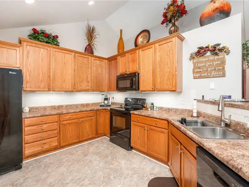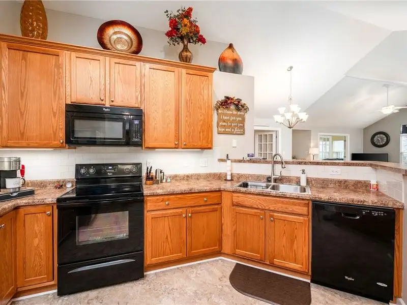 - Open-concept living with vaulted ceilings