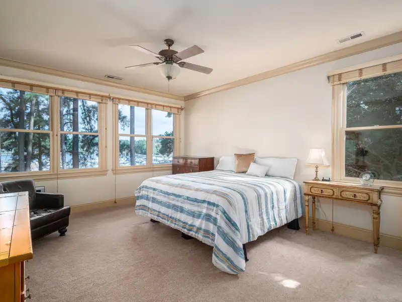 - Main-level primary suite with lake views