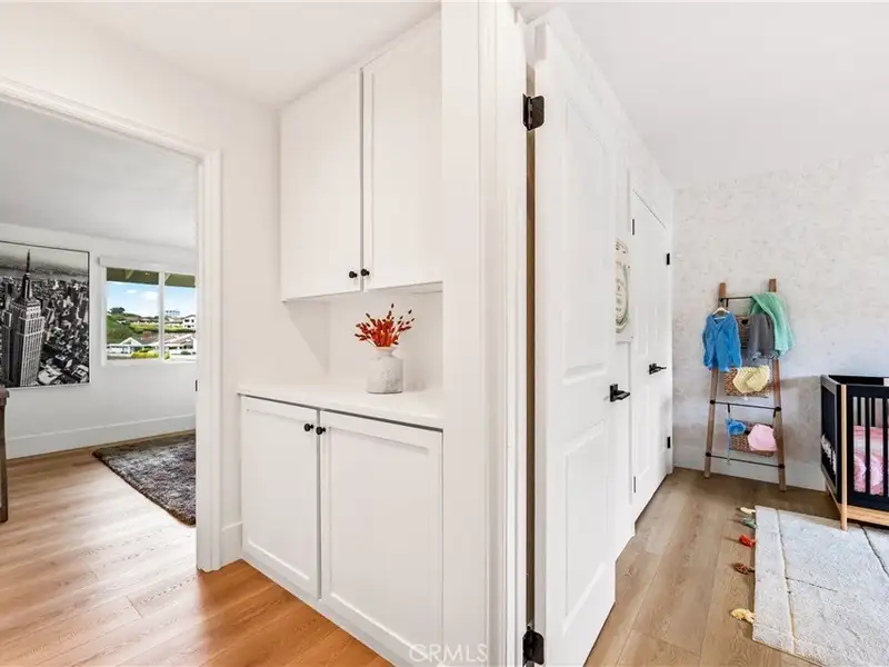 Upstairs, the spacious primary suite offers the ultimate retreat, with breathtaking canyon and ocean views from your private balcony — perfect for a quiet morning coffee or a sunset evening. The suite includes a cozy gas fireplace and a luxurious en-suite bath, with dual vanities, quartz countertops, a large walk-in shower, and a custom-built closet with ample storage. Two additional bedrooms provide space for family or guests, each offering comfort and privacy.