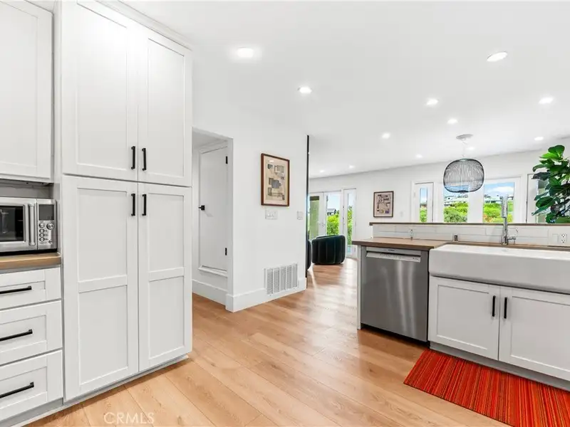 The chef-inspired kitchen is a showstopper, featuring crisp white shaker cabinets, gleaming quartz countertops, and high-end stainless steel appliances, including a Italian 5-burner stove, LG refrigerator, a brand-new dishwasher, and a large walk-in pantry for all your culinary needs.