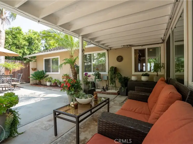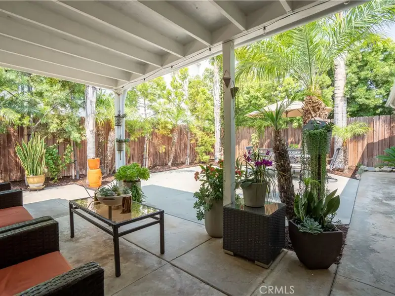 - Landscaped backyard with covered patio