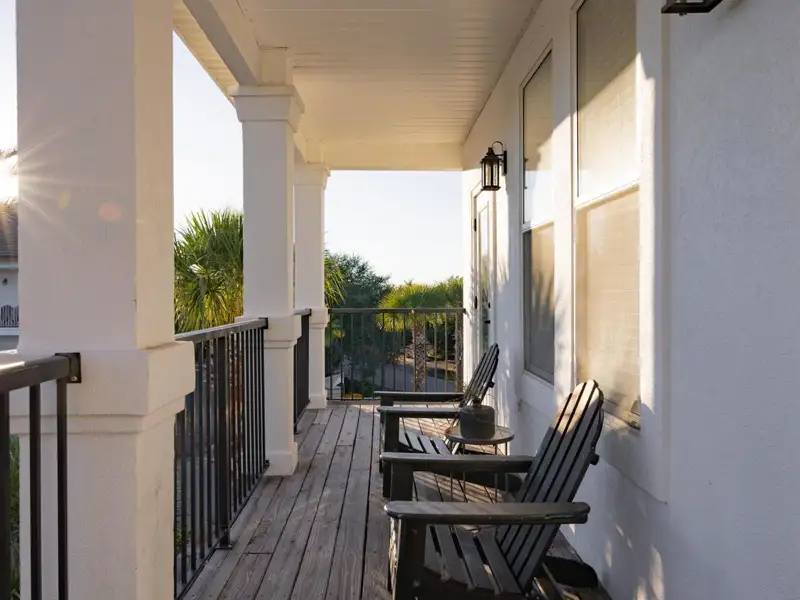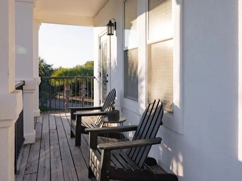 - Wide porches overlooking pool