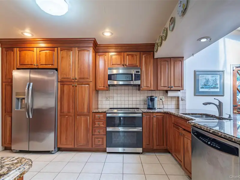 - Open-concept kitchen with granite counters