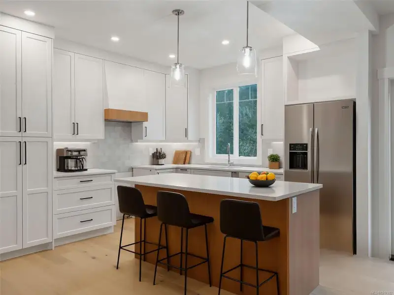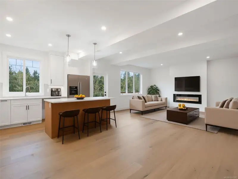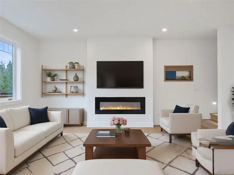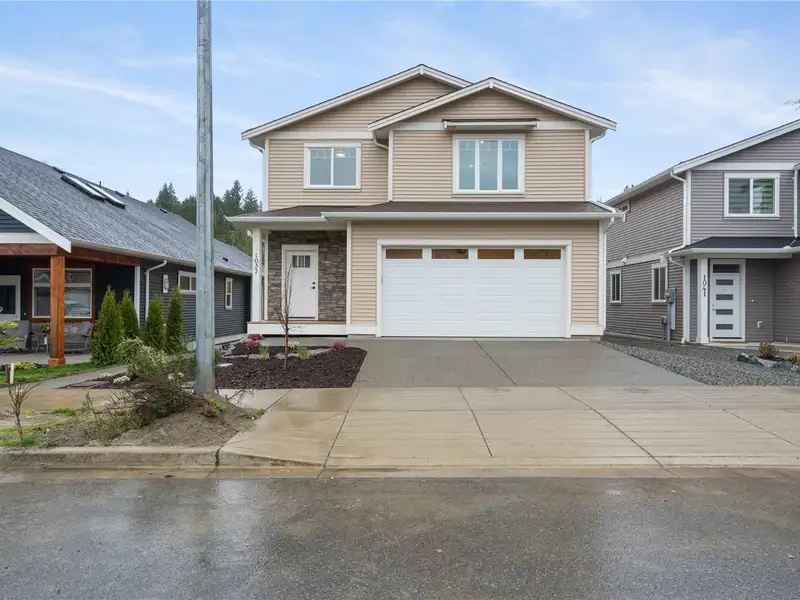 GST REBATE* Modern 5-bed, 3.5-bath home including 2 bed legal suite, crafted by Mid-Island Homes. This newly constructed home spans just over 3000 sqft and boasts a spacious main living area with open concept kitchen, dining and living room areas. The kitchen features ample cabinetry, stone counters, stylish backsplash, and an eat-in center island with pendant lighting. Entertain guests or simply spend time at home with the family in the warmth of your electric fireplace during those winter evenings. A convenient 2 pc guest bathroom and mudroom, with access to your 2 car garage, round out the main level. Upstairs, the luxury primary suite features a spa-like ensuite with tile shower, vanity sinks, soaker tub, and WI closet. A bonus family room, two sizeable beds, a 4 pc bath and laundry complete the 2nd floor. The lower floor houses a generous 2 bed suite with separate entrance. Located a short drive to all major amenities. *Verify GST Rebate and GST* measurements are approximate.