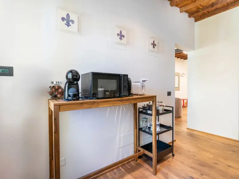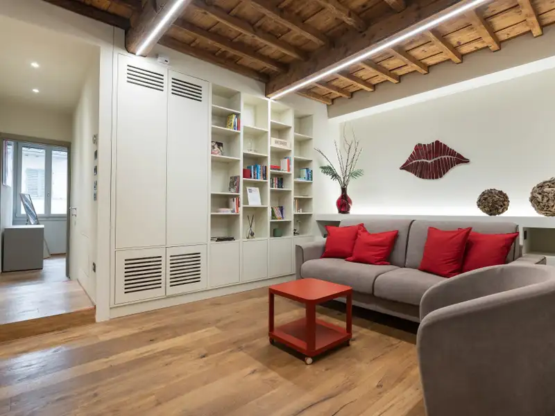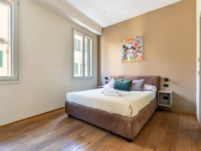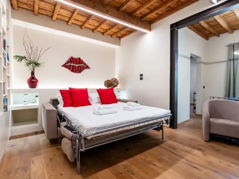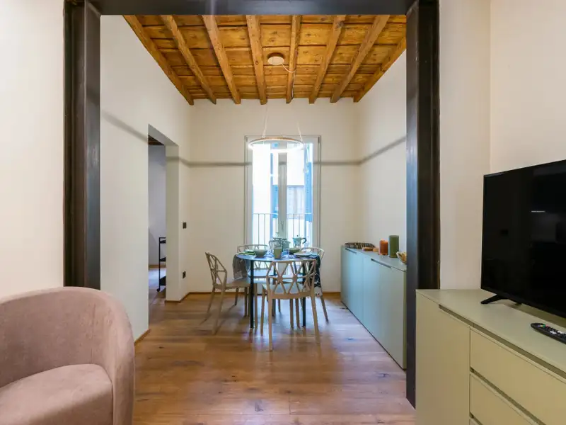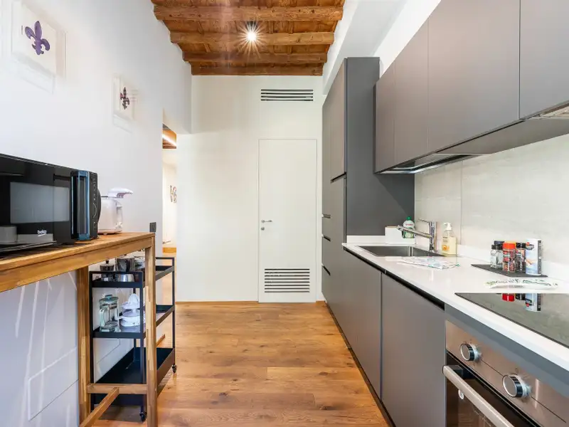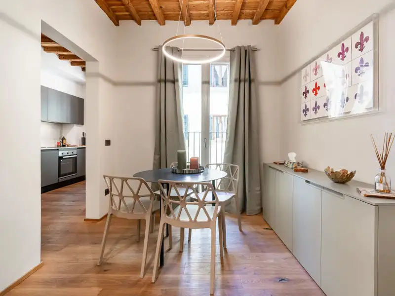 Located in the heart of the Oltrarno, between Borgo San Frediano and Santo Spirito, on the second floor without lift of an ancient building dated back to approx. 1900, this apartment of 60m2 has been completely renovated at the end of May 2023, taking into account of every little detail, making it very welcoming, with all new furnishings, some of which custom-made, , all in a modern but chic style. The space To the right of the entrance is the ample living room with Smart TV and a double sofa bed, the dining area furnished with a beautiful round iron table surmounted by a design chandelier of the same shape, also suitable for Smart Working, the spacious fully equipped kitchen with numerous wall units, fridge with freezer, electric oven and microwave, dishwasher and induction hob with hood. The living area is completed by a comfortable utility room with washing machine. To the left of the entrance, the sleeping area consists of a small bathroom with toilet and sink but complete with everything, the large double bedroom with chest of drawers and full-length mirror with two windows overlooking the street, a stupendous walk-in closet and the bathroom with shower illuminated by luminous strips inserted in the walls. The beamed ceilings in the living area are also beautiful, illuminated by LED strips that create fascinating plays of light together with those inserted in the wall behind the sofa, which also houses two niches on the sides that become bedside tables for the night. The Amenities Independent underfloor heating of the latest generation, ducted A/C, WI-FI, parquet floors and double windows all with mosquito nets. Offered fully furnished and equipped (artworks excluded), the property is move-in ready, making it an ideal turnkey solution. With its privileged location in the historic Oltrarno district—renowned for artisan workshops, lively piazzas, and authentic Florentine charm—combined with active CIN and CIR permits, the apartment is perfectly suited both as an elegant private residence and as a lucrative investment for short-term rentals.