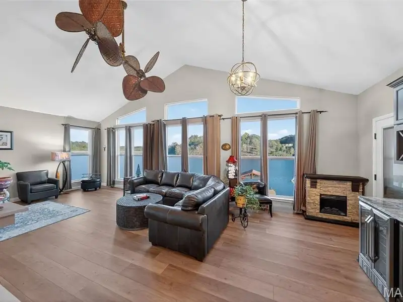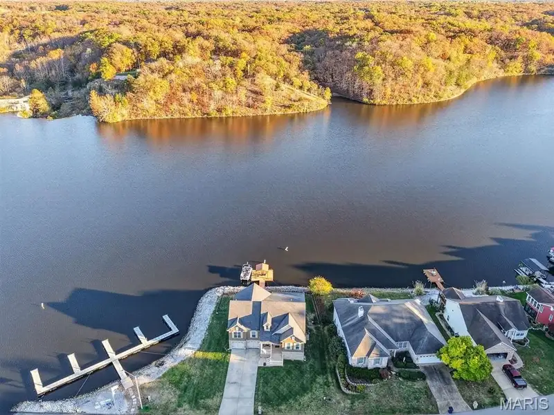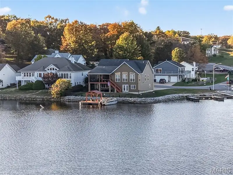 Property Viewings Begin at the Open House11/09! Waterfront Living at its Finest! Can you imaging a Peninsula site with three sides of panoramic water views? Enjoy lake life in this New England Style home with 3 spacious Bedrooms and 3 Full Baths. Located in the highly desirable community, Incline Village, in convenient Foristell, Missouri. This is a rare opportunity to secure a custom built home that is just 8 years new. It combines the modern features and finishes in a setting that captures the endless Panoramic Lake Views. The inviting concept features: granite counters, tinted windows for controlled natural light that illuminates the interior. A Grand Primary Suite offers a private retreat with an indulgent Bath and private access to your private deck. What a way to greet every morning with a smile. The finished Terrace Level includes a walk-out to a level lawn and fenced rear yard. Such a rare find to secure an easy approach to all of your water activities. You are just steps away from dipping your toes in the water. . Relax on the deck with a summit view or have your beverage from your private boat dock, perfect for fishing, boating or simply soaking in the serenity of lakeside living. Whether you're entertaining guests or enjoying quiet evenings by the lake, this home offers the ideal waterfront lifestyle. Don't miss your chance to own a newer move-in ready retreat in a community known for recreation, natural beauty, relaxation. Enjoy!