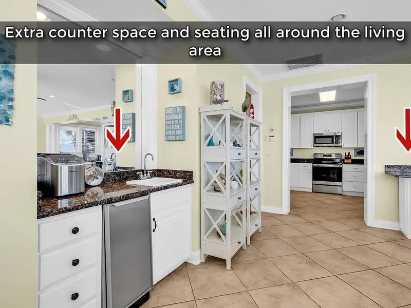 • Custom wet bar with stainless steel ice maker