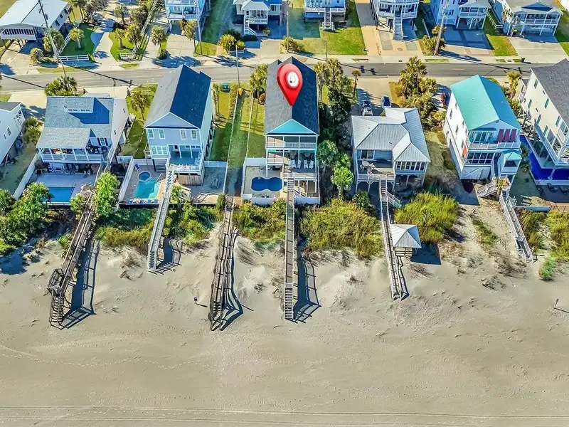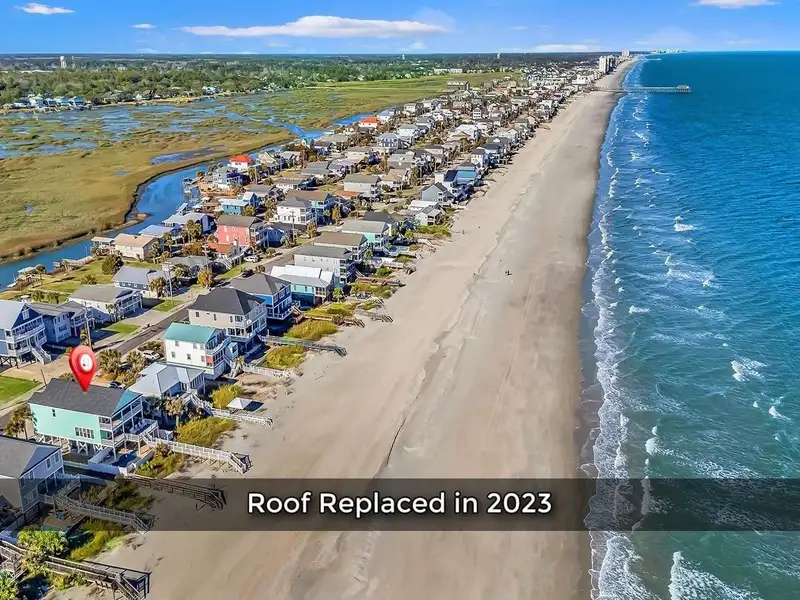 Welcome to Heaven-Can-Wait, an exquisite oceanfront masterpiece situated in the coveted sweet spot of Garden City Beach, at 885 S Waccamaw Drive. Nestled on a prime lot on the south peninsula, this luxurious property offers an unparalleled coastal living experience. With the benefit of the natural protective dunes lining the rear of the property, this home stands apart from many in the area—a true rarity in this pristine locale. Indulge in the exceptional amenities of Heaven-Can-Wait, including an inviting private swimming pool—a true highlight, where many oceanfront properties face coastal setbacks restrictions eliminating the possibility of a swimming pool. This 7-bedroom, 6-bathroom haven offers expansive living spaces and is a vacation rental monster. Don’t forget to request the rental history from your agent; it’s certainly exciting as you learn the investment opportunity this home presents. Recently upgraded with a brand-new roof, this home exudes elegance and ease. The addition of new, maintenance-free vinyl railings on the porches and beach walkway, as well as new Trex decking, enhances its timeless beauty and functionality. The thoughtfully designed outdoor space allows you to unwind by the pool while soaking in the sun or relax under the shaded areas—perfect for enjoying the tranquil surroundings. Inside, no detail has been overlooked. The state-of-the-art kitchen features stainless steel appliances, granite countertops, and a breakfast bar, ensuring your culinary endeavors are nothing short of exceptional. A custom-built wet bar, complete with a freestanding stainless steel ice maker, wine rack, and sink, enhances the entertaining experience. The expansive family room offers a custom-built entertainment center with a large flat-screen television, DVD player, and ample storage—ideal for leisurely evenings. Every modern comfort is at your fingertips, comfortably accommodating up to 22 guests with two king-sized beds, six queen-sized beds, two queen sleeper sofas, and two twin roll-away beds, ensuring every guest is pampered. Step outside and experience the breathtaking views from the oceanfront deck, complete with rocking chairs, bistro tables, and a hammock for the ultimate relaxation. The private pool, measuring 11’x24’, offers a serene retreat with the option for heating during the off-season months. This is more than just a home; it’s a coastal sanctuary that combines luxury, comfort, and investment potential. Make Heaven-Can-Wait yours today—where life’s greatest moments unfold. **Please note: Photos were taken during winter season when grasses are dormant; therefore, grass in the photos have been edited to green color.**