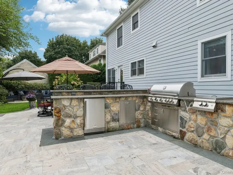 - Private fenced backyard with outdoor kitchen