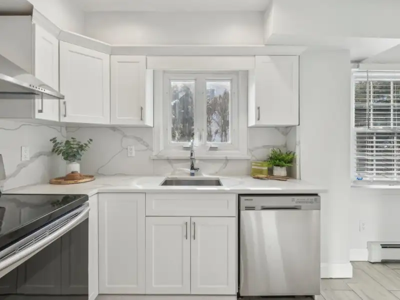 - Eat-in kitchen with quartz countertops
