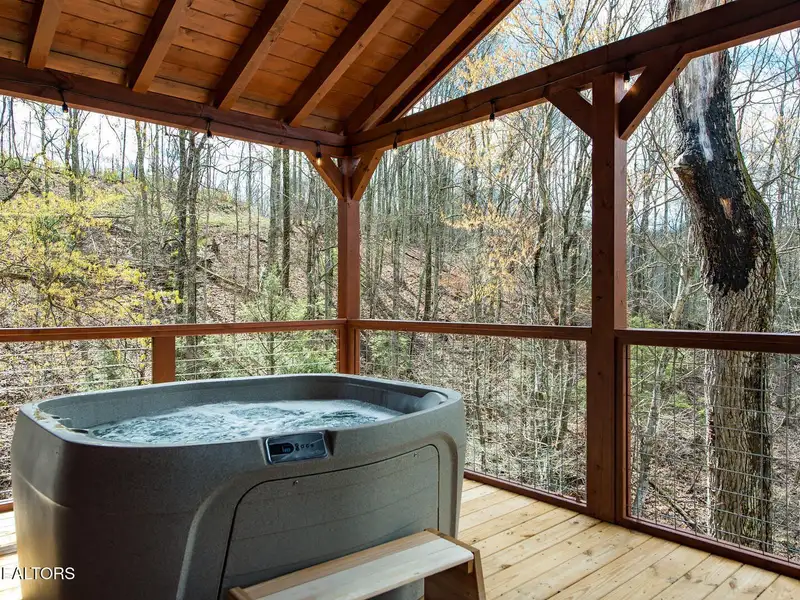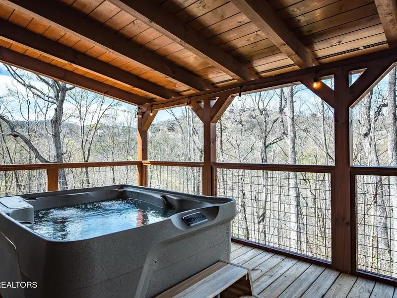 - Large private outdoor decks with hot tub