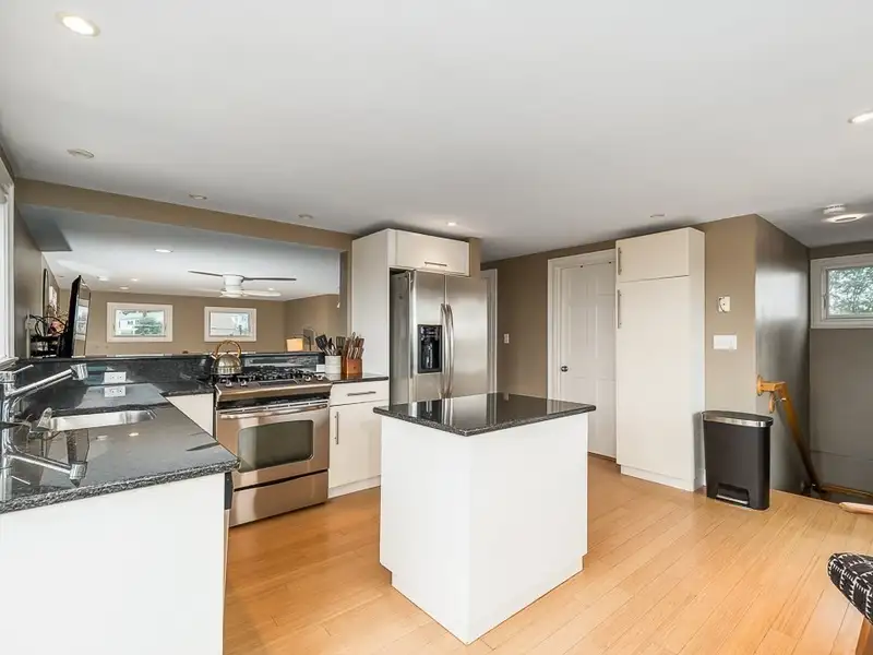 - Kitchen with granite and stainless steel