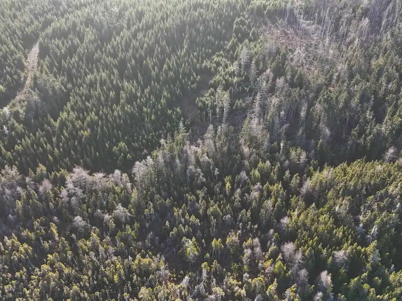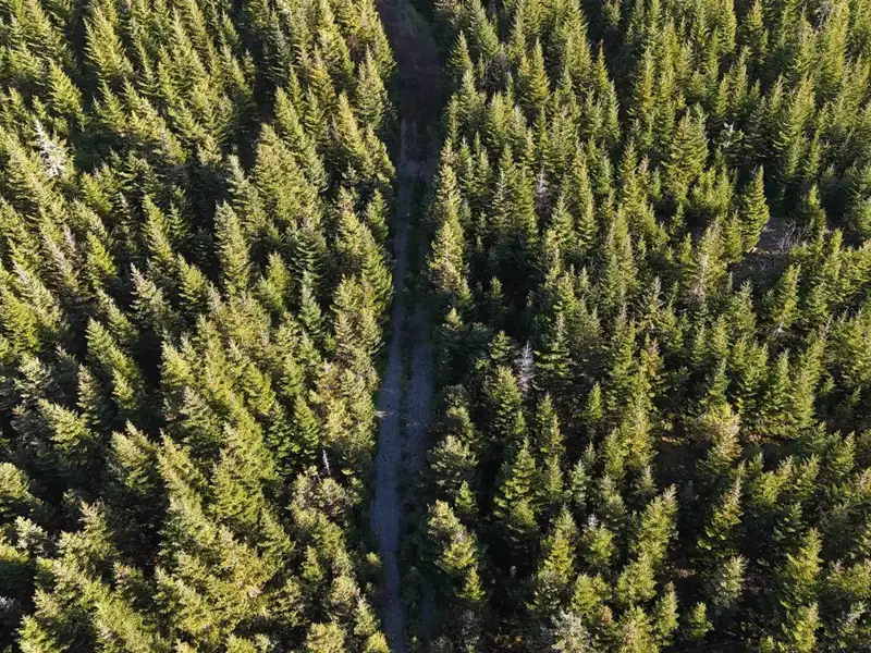 - Mostly softwood forest for privacy
