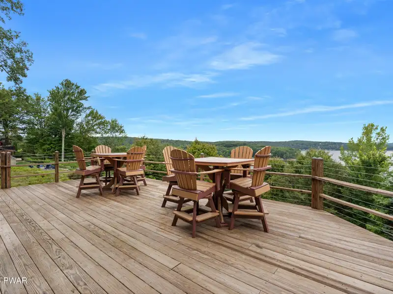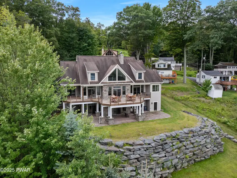 - Expansive deck and covered stone patio