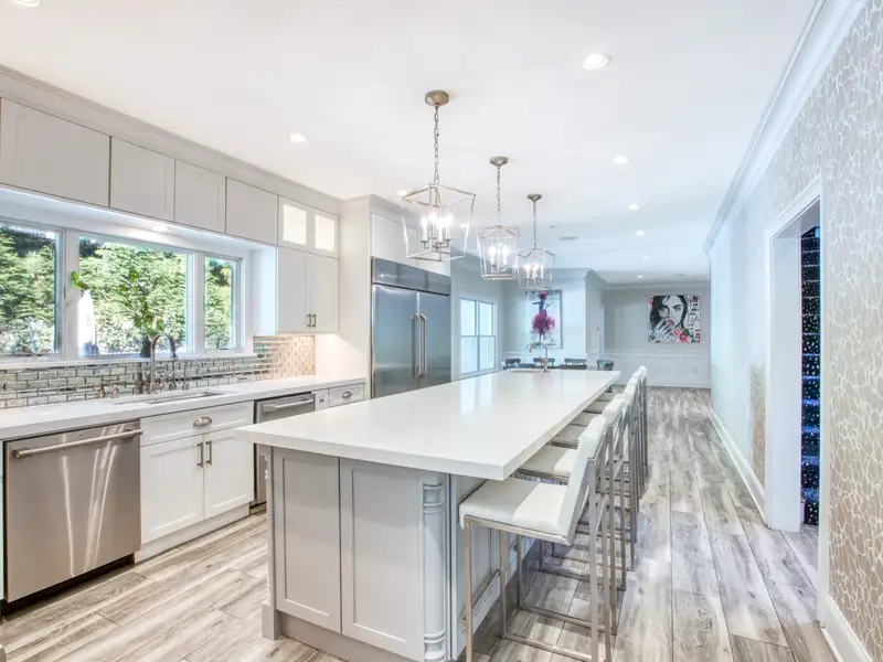 - Gourmet kitchen with 16-foot quartz island