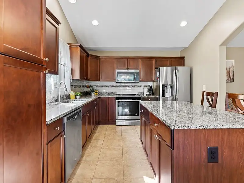 - Oversized granite eat-in bar