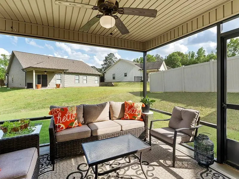 - Screened-in back porch with ceiling fan