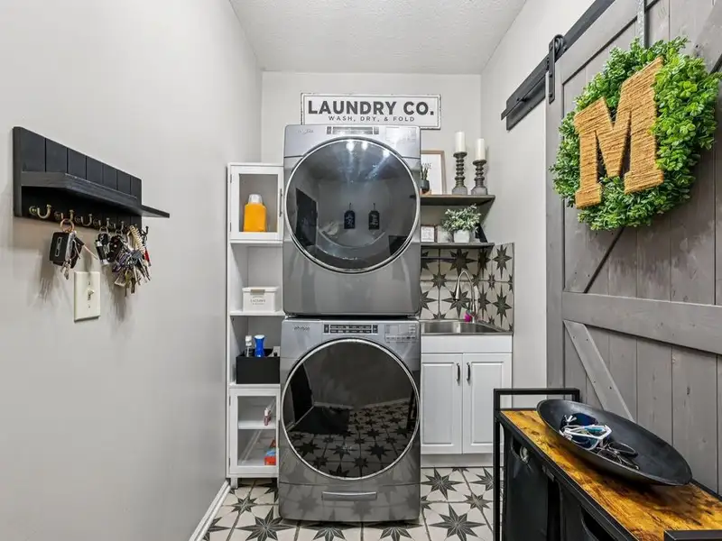 - Partially finished basement with storage