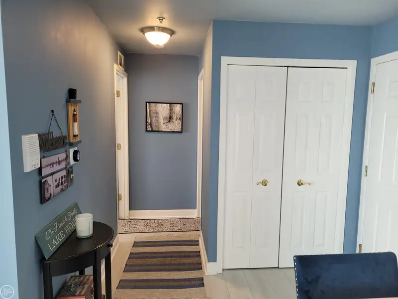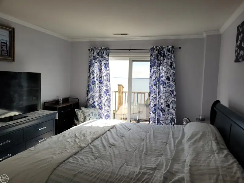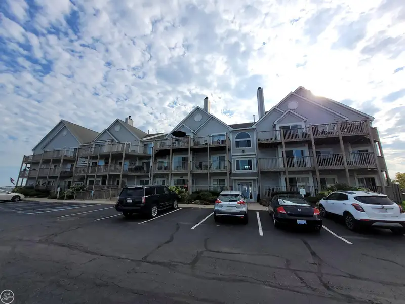 LAST CHANCE "OFF-SEASON" PRICE REDUCTION! GET THIS BEAUTY AT A LOW PRICE BEFORE IT'S PULLED FROM THE MARKET! Stunning, top-floor, penthouse-style waterfront condo directly on Lake St. Clair with unobstructed views--clear to the Detroit skyline. No one above you; just blue sky from the expansive deck. Inside, an open-concept layout is bathed in natural light, showcasing lake vistas from every room. New laminate flooring and a Nest smart thermostat make it truly move-in ready. The split bedroom layout offers flexibility and privacy. The primary bedroom features new carpet and an adjacent bath with shower. A professionally installed, queen-size Murphy bed near the guest bath (tub/shower) lets the space convert from a stylish lounge--with a matching built-in bar--into a comfortable guest suite. A remote Levolor drop-down wall creates a true second bedroom when needed. Step out to your private balcony/deck and watch the boats glide by. Community amenities include a pool, community center, and fitness room--perfect for relaxing or entertaining. A dedicated one-car garage adds convenience. The HOA covers water, trash, grounds maintenance, and weekly cleaning of the freshly updated common hallways (new carpet and paint). Trade rakes and shovels for lake life--dockage in front of the building is available at a discounted rate (subject to availability and association rules). Lake St. Clair is literally your backyard. Option to purchase fully furnished if desired. This is an exceptional opportunity to own a turnkey, top-floor lakefront home tailored for tranquility, luxury, and entertaining. Schedule your private showing today.
