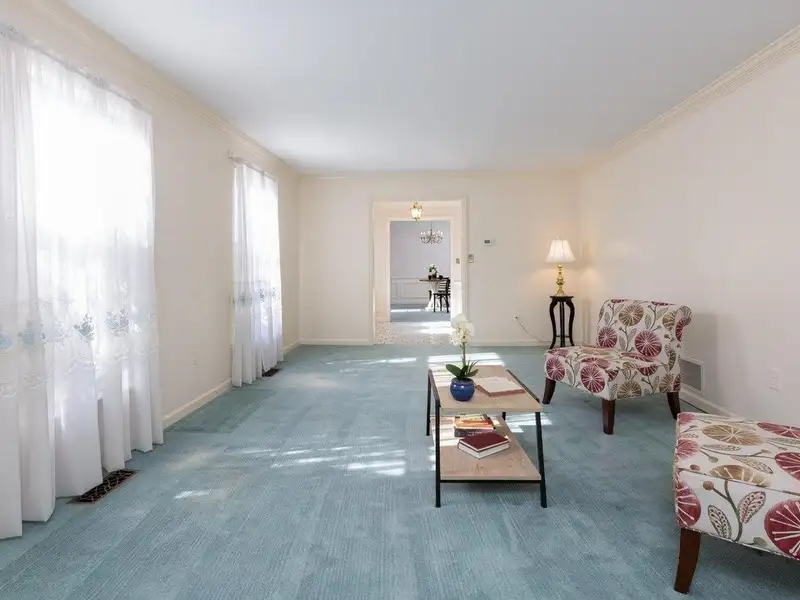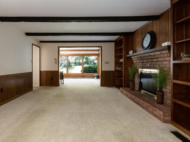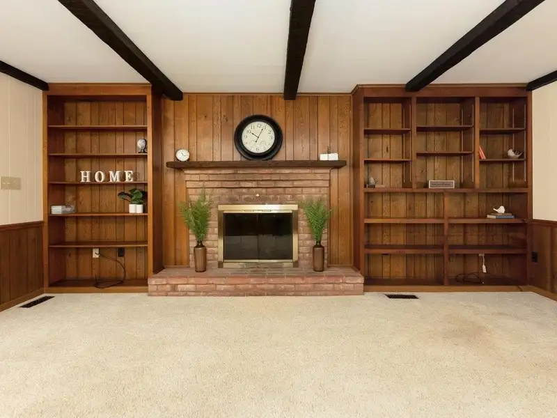 - Formal living room with built-in bookshelves