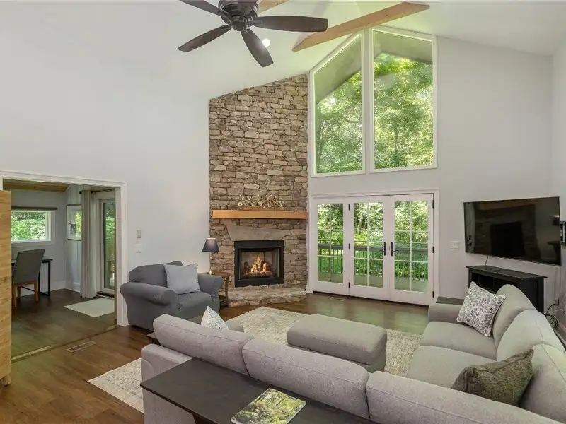 End-of-season price improvement! Tucked into a lush setting between Highlands and Cashiers, this refined duplex offers a rare blend of privacy, comfort, and access to one of the Plateau's most exclusive lifestyle communities. Membership at Wildcat Cliffs Country Club is reserved with ownership-a significant advantage, as there is currently a waiting list for non-residents. This is a turnkey opportunity for elevated mountain living, complete with your choice of social or full golf privileges. Both light-filled units feature soaring ceilings, expansive windows, and open-concept layouts designed for effortless living. In Unit B, a dramatic stone gas fireplace anchors the main living area; Unit A offers a sleek gas fireplace with a more modern profile. Spiral staircases in each unit lead to versatile loft spaces ideal for a home office, studio, or private retreat. Primary suites include spacious ensuite baths, and secondary bedrooms with full guest baths offer comfort and flexibility. Unit B also includes a sunroom and a partially covered deck at the rear, while Unit A features its own open deck. These outdoor areas overlook a backyard wrapped in greenery-providing both separation and subtle connection between the units. Each also includes a classic front porch, an individual one-car garage with space for a golf cart, and additional parking pads, with a shared driveway serving both. The property is offered as a full duplex or as individual residences, with preferred pricing available for buyers acquiring both. Just minutes from the Whiteside Mountain trailhead and the fine dining and boutique shopping of Highlands and Cashiers, the home offers easy access to everything that defines life on the Plateau. Membership at Wildcat Cliffs Country Club includes a championship golf course, multiple dining venues, a recreation and fitness center with state-of-the-art equipment, tennis and pickleball courts, croquet lawns, stocked fishing ponds, and a year-round calendar of curated social events. Whether for weekends or full-time living, this home is a sophisticated gateway to one of the Plateau's most celebrated communities.
