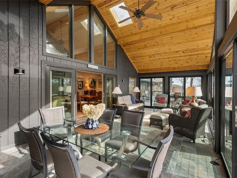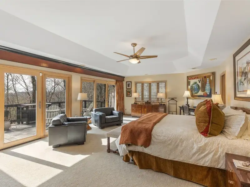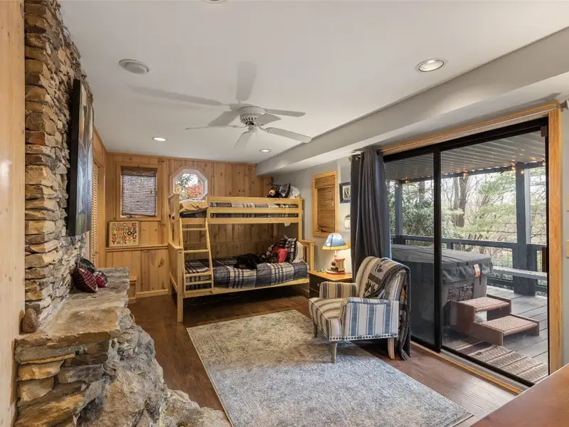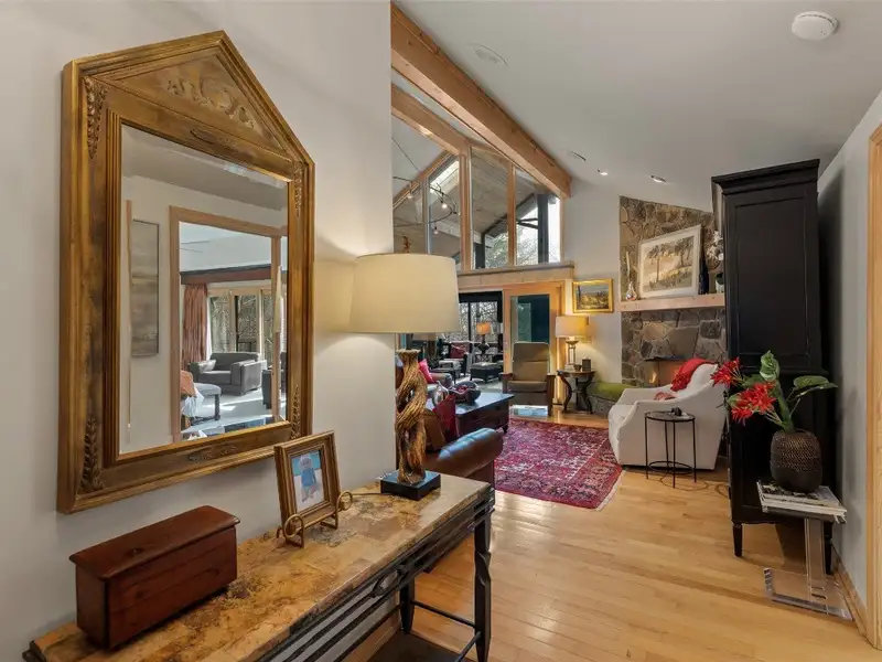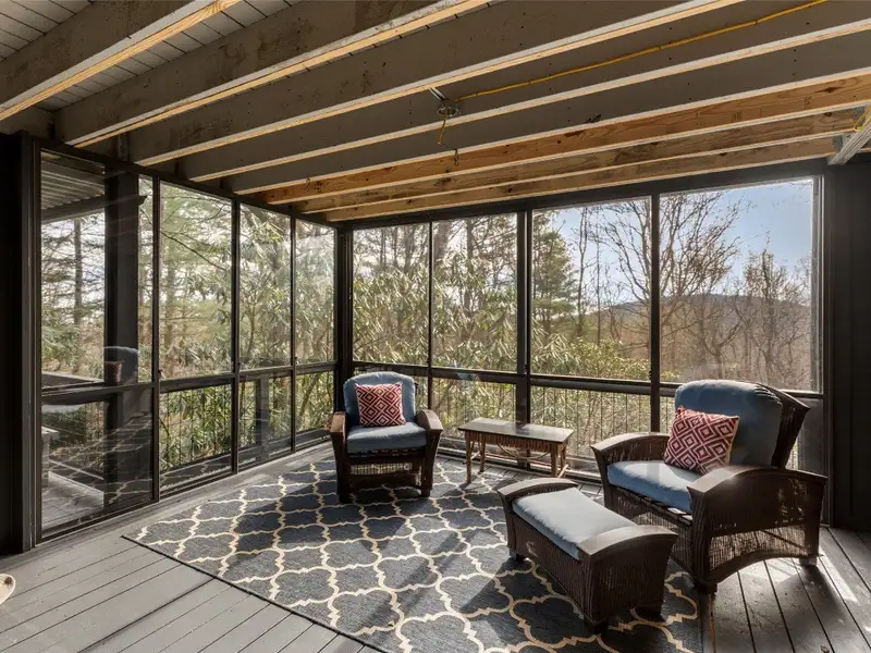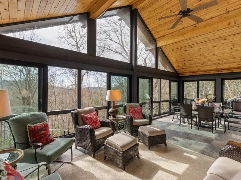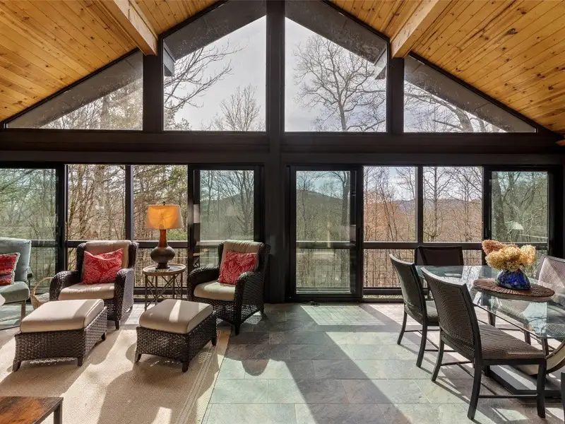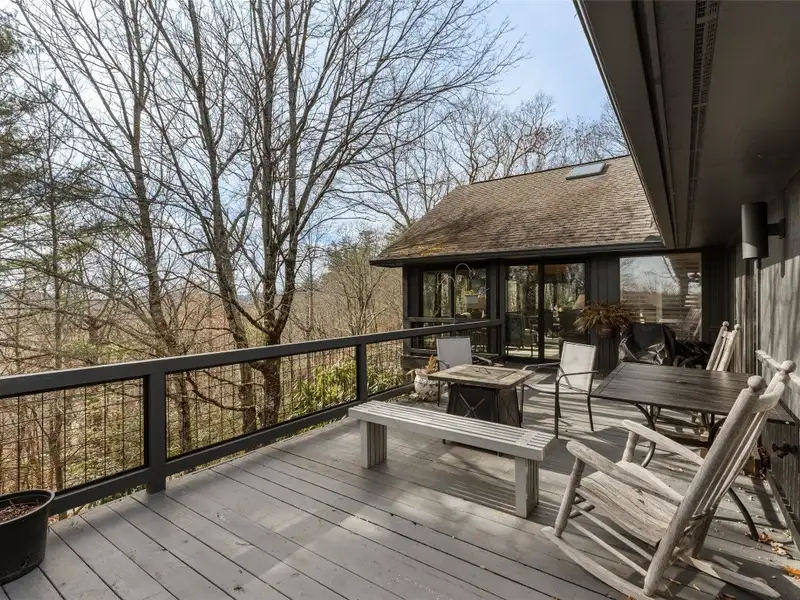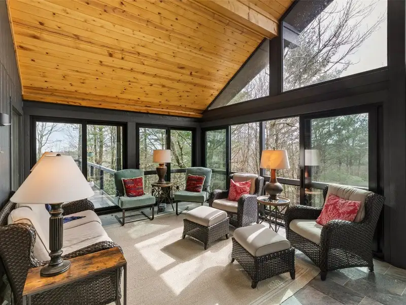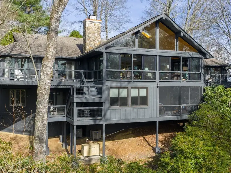 Perched above Highlands' famed 4,118 feet-this elegant mountain residence enjoys refreshing temperatures and gentle breezes year-round. A stately gated entry welcomes you to this beautifully updated Craftsman-style home, with a brand-new roof currently being installed. The thoughtfully designed floor plan offers effortless main-level living with an inviting open-concept great room and three spacious bedrooms, each with tastefully updated baths. The impressive primary suite is a true retreat, featuring private deck access, a generous spa-inspired bath with a steam shower and heated floors, a large closet, and remote-controlled drapery for added comfort and convenience. The kitchen has been stylishly updated and enhanced with a new walk-in pantry, cabinetry, floor and appliances. A handsome stone fireplace anchors the living and dining areas, which flow seamlessly onto a remarkable all-weather porch. Ingeniously designed glass doors allow the space to transform from enclosed to screened in moments-perfect for taking in the southern exposure, western-facing sunsets and winter mountain views. The lower level offers additional space for entertaining or relaxing, including a family room with a wet bar, an office, a guest bedroom, a game room, two full bathrooms and access to both a screened porch and deck. Additional highlights include a two-car garage with workshop area, side courtyard for gardening, ample driveway parking with an added street-level parking pad, and a generator for peace of mind during inclement weather. Privately situated within the gated, scenic community of Highlands Falls Country Club-just minutes from downtown Highlands-this home offers the ideal blend of privacy, convenience, and refined mountain living. Club membership is optional but provides access to wonderful amenities for those seeking an exceptional Highlands lifestyle.