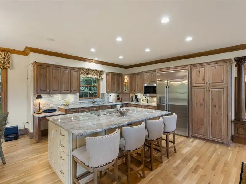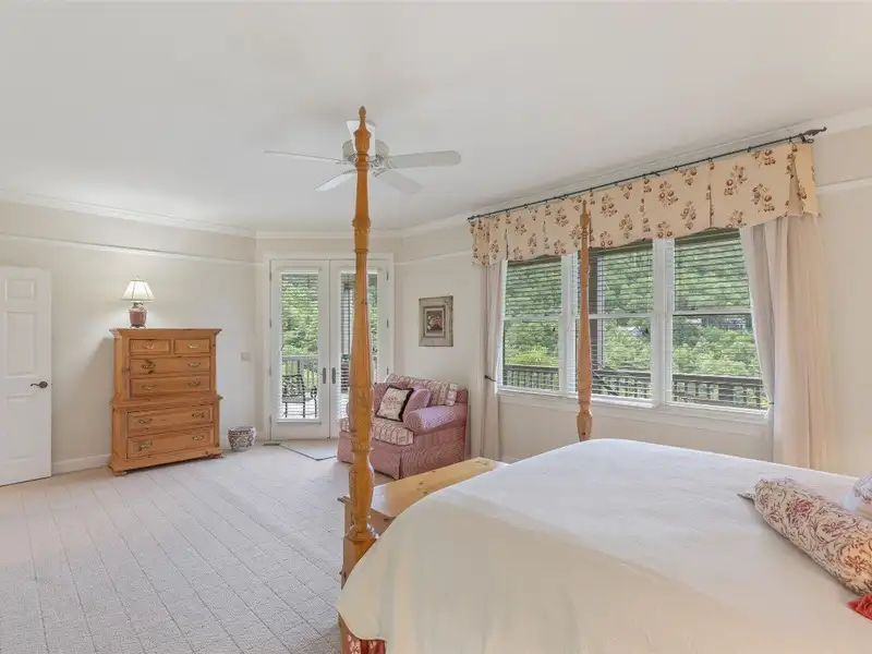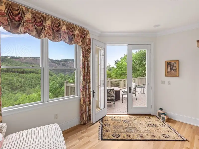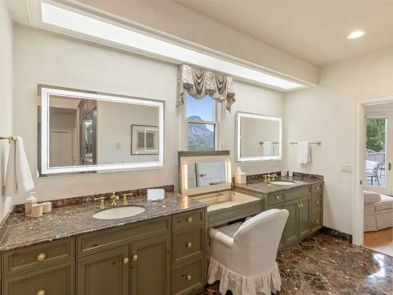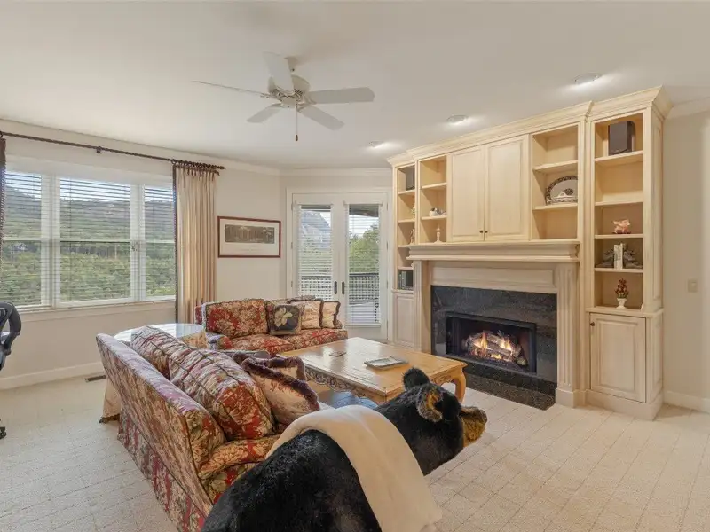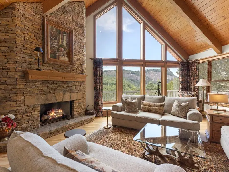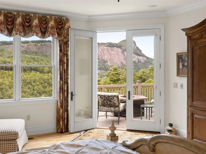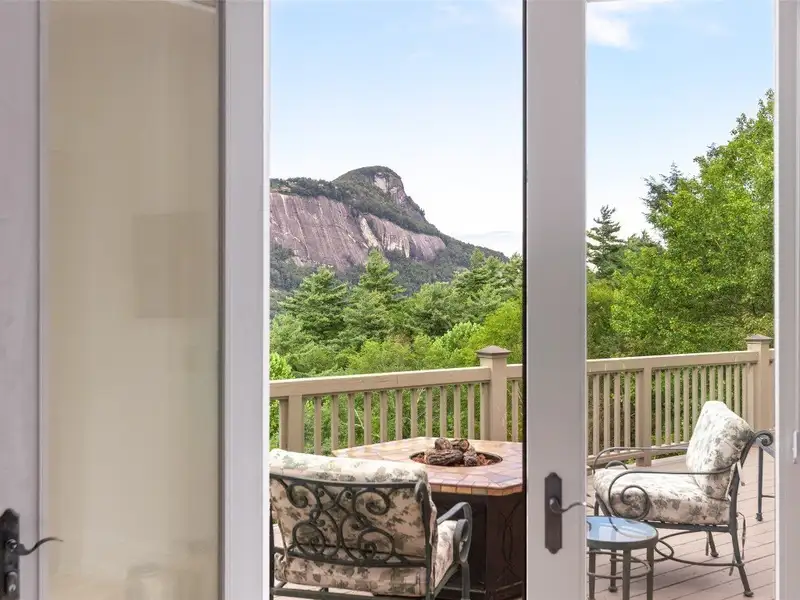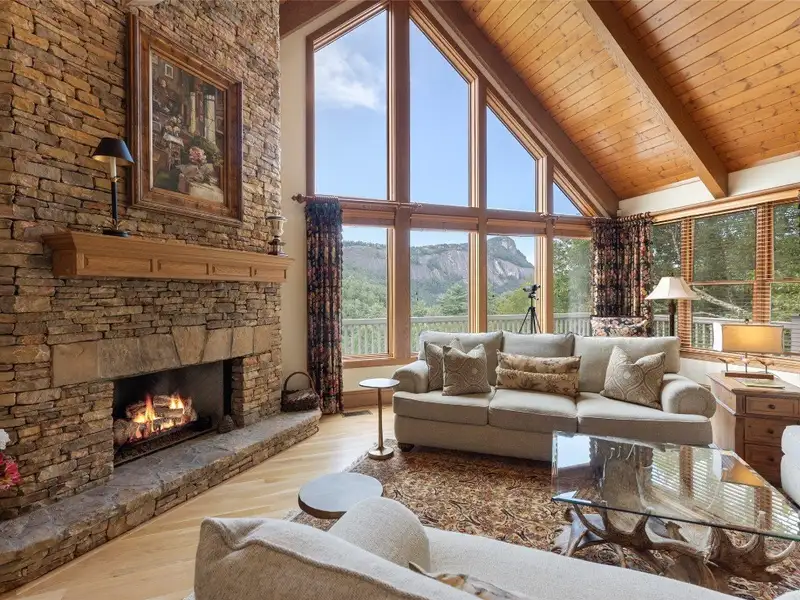 This is the Panoramic BIG VIEW! Prepare to be captivated by sweeping, unobstructed views of iconic Whiteside Mountain from this stunning Highlands Falls Falcon Ridge residence, a home so remarkable it has been featured twice in Architectural Digest. Designed with generous proportions and effortless flow, the home offers main-level living with the primary suite conveniently located on the entry level. Architectural details abound, highlighted by custom wormy chestnut and oak features throughout, including an impressive 3" solid wormy chestnut entry door. The primary suite commands breathtaking mountain views and sunrises and boasts a lavish Italian marble bath with soaking tub, oversized shower, dual lighted mirrors, hidden lighted vanity, Kohler fixtures, custom walk-in closets, and a private wet bar with sink and mini-fridge. The open-concept living, dining, and kitchen spaces flow seamlessly onto a screened porch with a fully outfitted grilling station featuring a Blaze grill-an entertainer's dream with Whiteside Mountain as the backdrop. The main level also conveniently includes a guest bedroom, full bath, office/den with custom glass paned wormy chestnut and oak door, and a full laundry room with sink. The lower level provides for guest privacy with a second living area with fireplace, private deck, two spacious en-suite bedrooms, powder room, bonus/flex room with gym/playroom potential, and a secondary laundry area. Recent upgrades are extensive, including a remodeled kitchen, refinished hardwood floors, 27 new windows, new roof, gutters with guards, encapsulated crawlspace, repaved driveway with focal pavers, updated HVAC systems, new water heaters with recirculation pump, blown-in attic insulation, new gas logs in main level fireplace, and view clearing to fully showcase dramatic views of Whiteside Mountain, Wildcat Ridge, and Cullasaja Club beyond. A drainage system beneath the upper deck ensures protection for the lower-level outdoor living area. Peace of mind comes with a 500-gallon fresh water reserve tank and a whole-house generator. A two-car garage with workshop, along with a welcoming exterior accented by a serene water feature, completes this mountain sanctuary. This Highlands Falls home is more than a residence-it is a retreat of timeless architecture, meticulous updates, and awe-inspiring views. Membership to Highlands Falls CC is not mandatory but the amenities are tremendous and the club is vibrant. See Attached Matterport for tour.