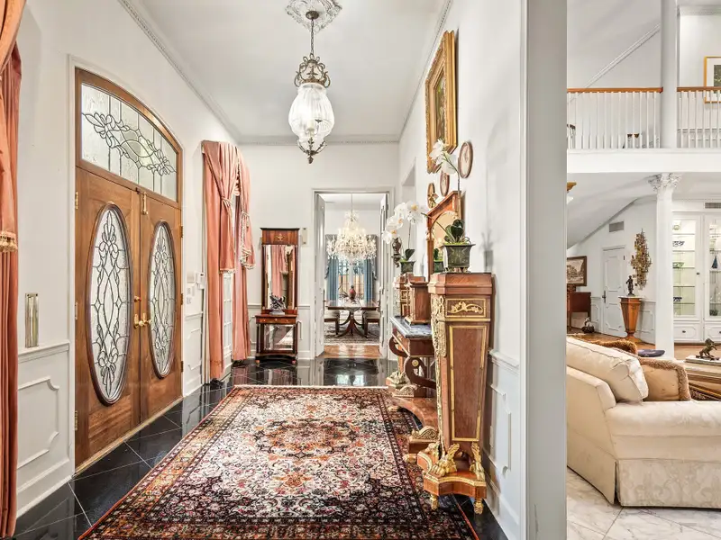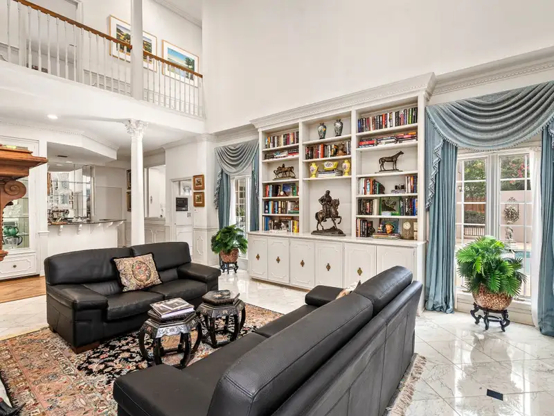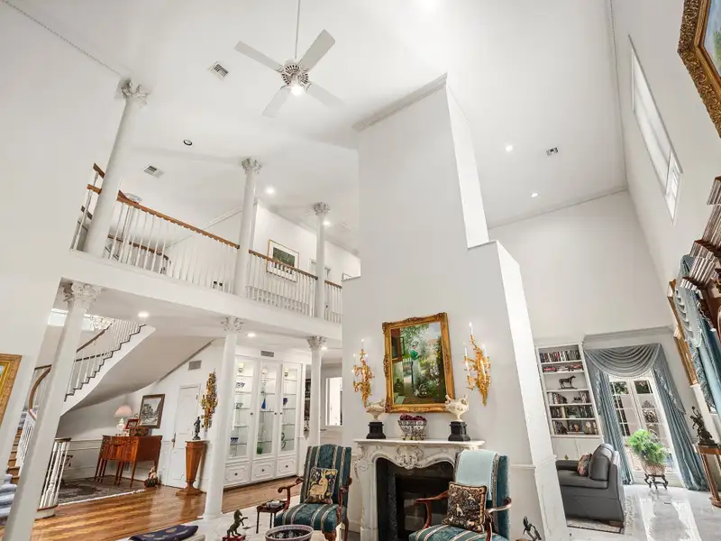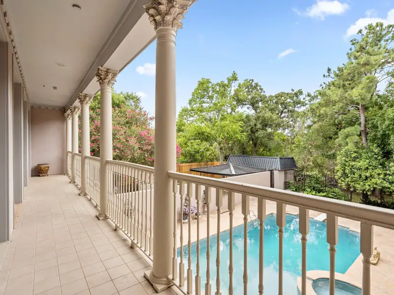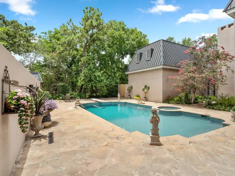 Stately, two story traditional home on a large 26,350 sqft (per HCAD) lot, ready for transformation. Expansive primary bedroom down with dual bathroom and closets. Formals, den, wet bar/butler's pantry, wine room with storage closet. Kitchen area has a large walk in pantry, utility room, desk area and room for a dining table. Two staircases. Three bedrooms up, all with ensuite baths. Large game room (4th bedroom) up. Extra room up, could be home office/study. Swimming pool. Two driveways, enter and exit on Rocky River or Sage Rd. Parking court, 2 car garage, 2 car carport, extra parking. Private courtyards. Being sold in present condition. No repairs will be done. This is an opportunity to customize or create your dream home. All info per seller