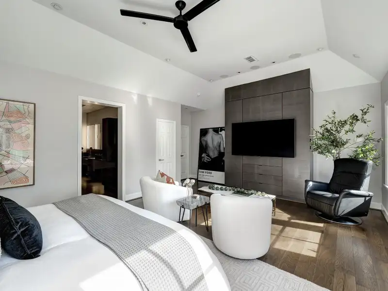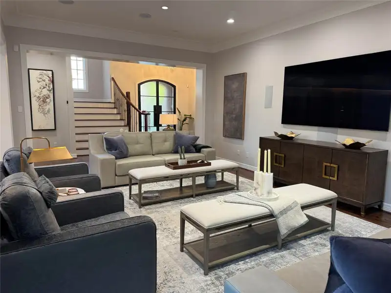 Beautifully appointed home in a gated community located near Uptown/Tanglewood. Exceptional natural light throughout, highlighted by a 2-story entry open to the second floor. A private study sits just off the foyer & features elegant curved windows, fireplace, & floor-to-ceiling built-in bookcase. Living room flows to dining area, w/convenient dry bar positioned nearby. Kitchen includes ss appliances, stainless & granite countertop with breakfast bar, & large walk-in pantry. Just beyond, the den offers exposed ceiling beams & fireplace, creating a warm & comfortable gathering space. Upstairs, the spacious primary suite features a well-appointed bath w/double sinks, vanity, separate soaking tub & shower, & 2 generous walk-in closets. Two additional secondary bedrooms are also located on 2nd floor. The 3rd floor offers a flexible bonus room or additional bedroom with its own full bath. Outdoor living is easy with a covered patio off the living room and a low-maintenance turf backyard.