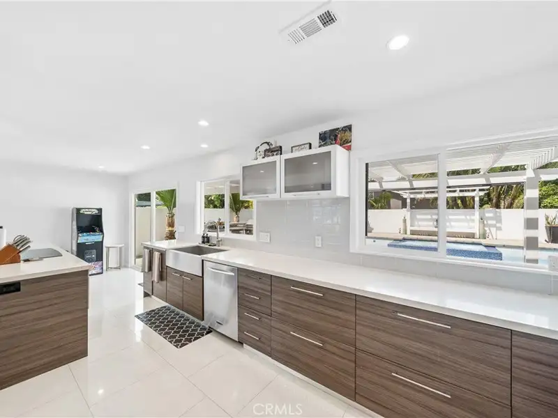 - Custom kitchen with quartz island