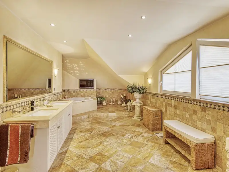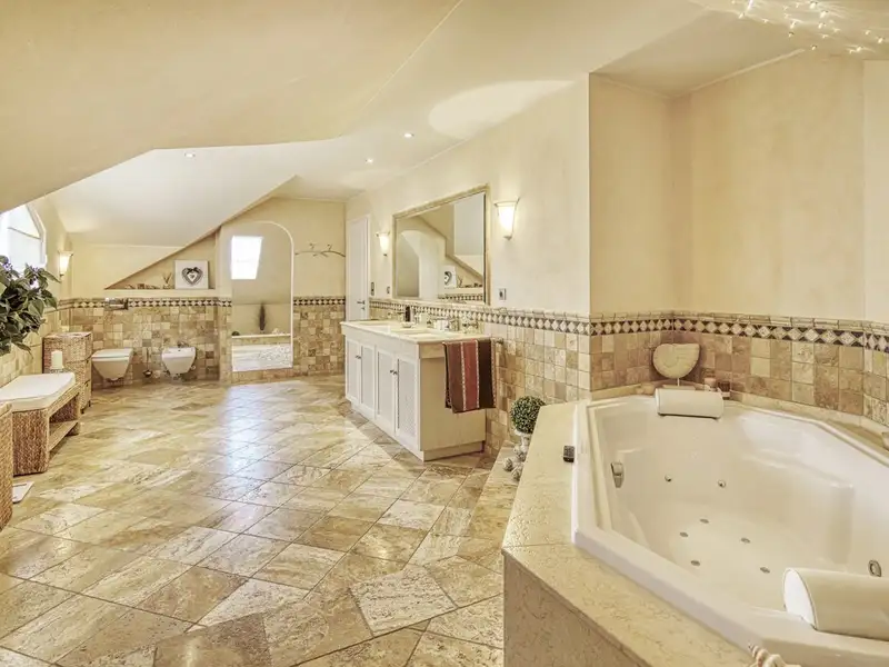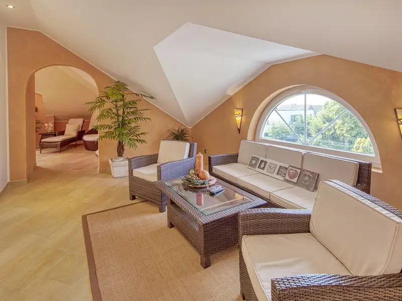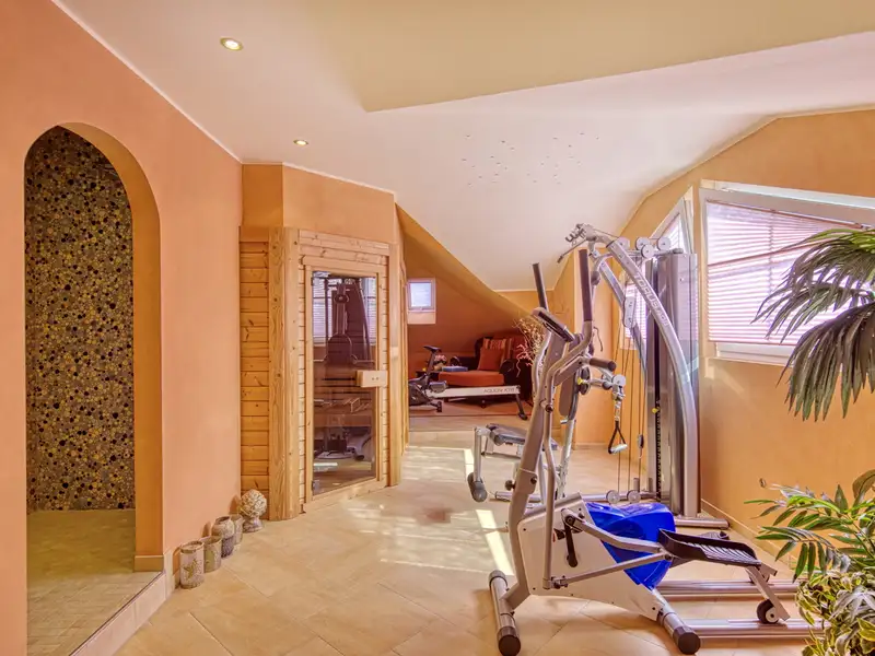 Another highlight is the exclusive wellness area with sauna, shower and separate WC - complemented by an adjoining room that is currently used as a fitness area. A private spa area has been created here, combining Mediterranean lightness with modern luxury.