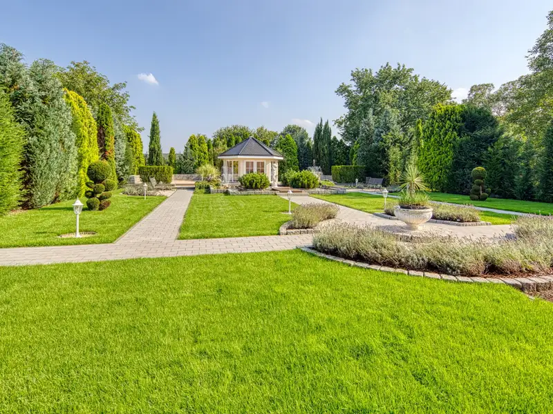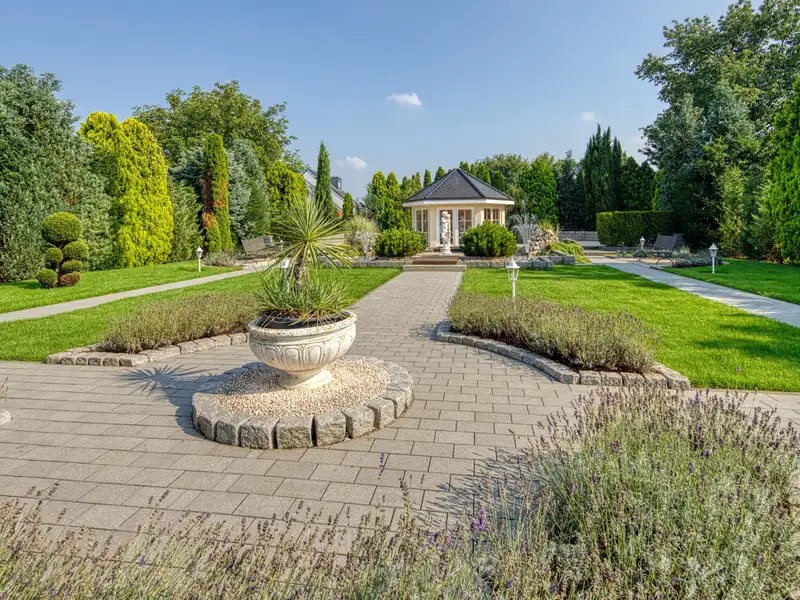 The Mediterranean-style garden, which is the sole property of this apartment, is a real gem: lovingly planted, thoughtfully structured and equipped with a pavilion, shower and WC - ideal for summer evenings, stylish receptions or relaxing hours in the greenery.
