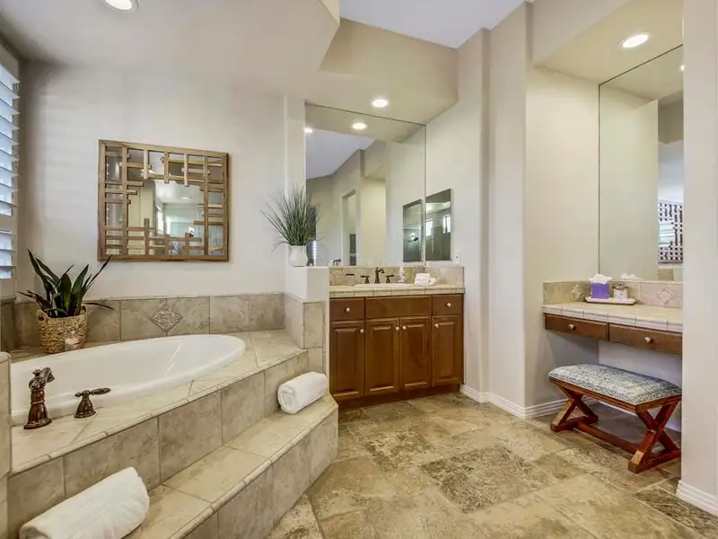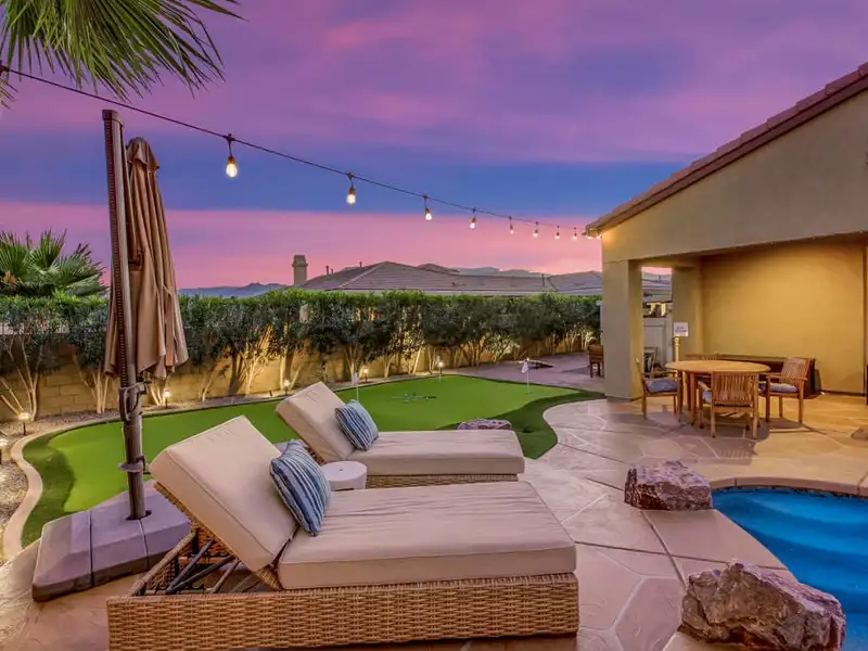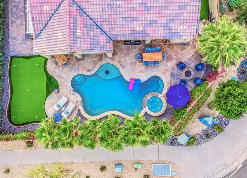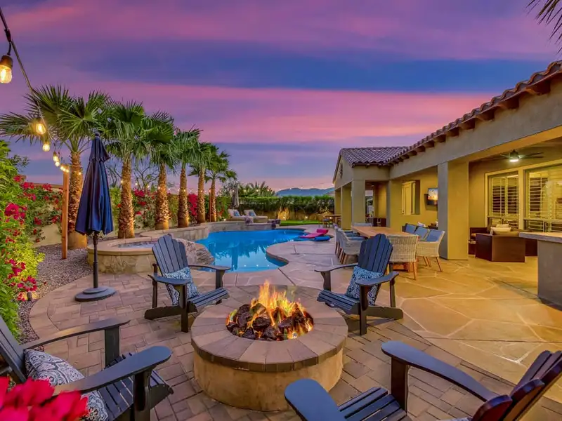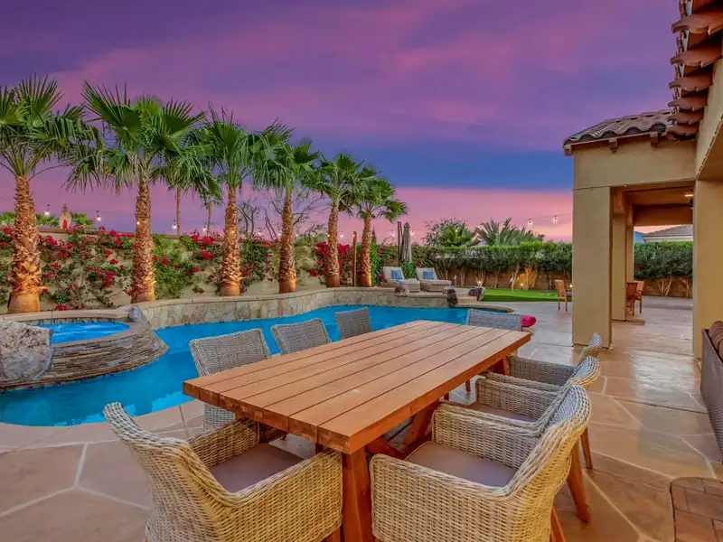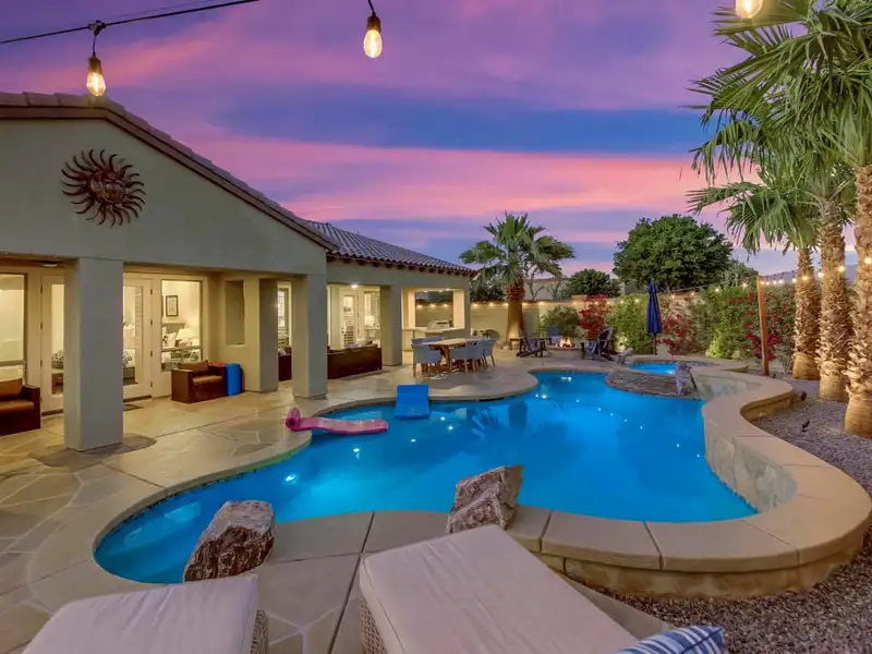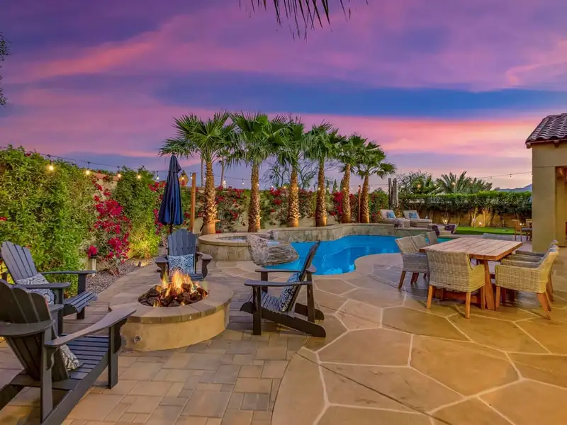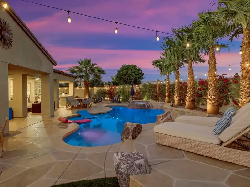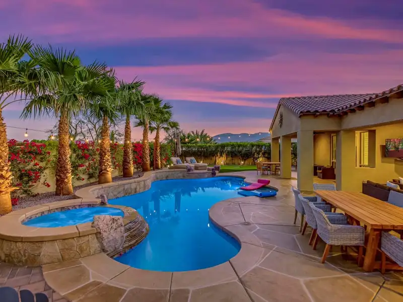- Resort-style private backyard with pool and spa