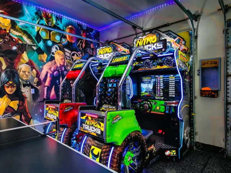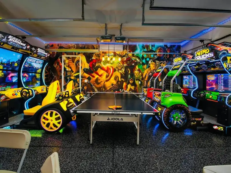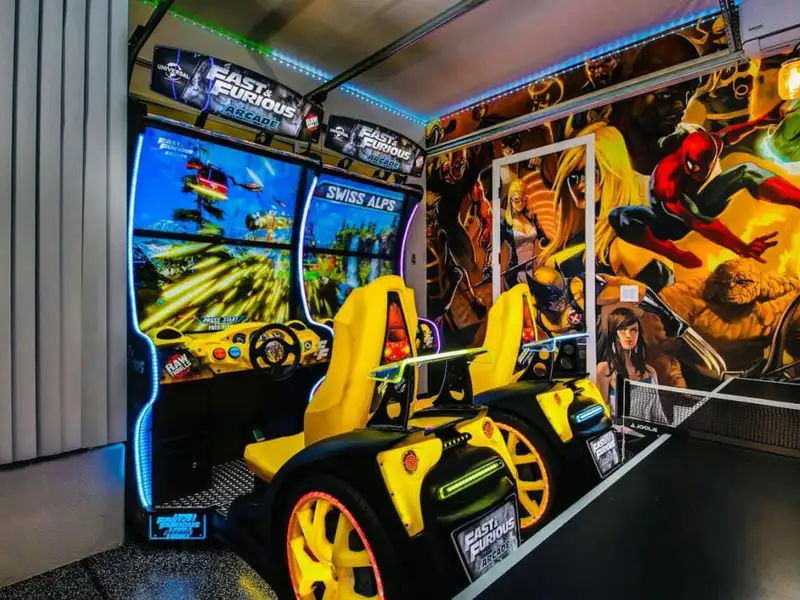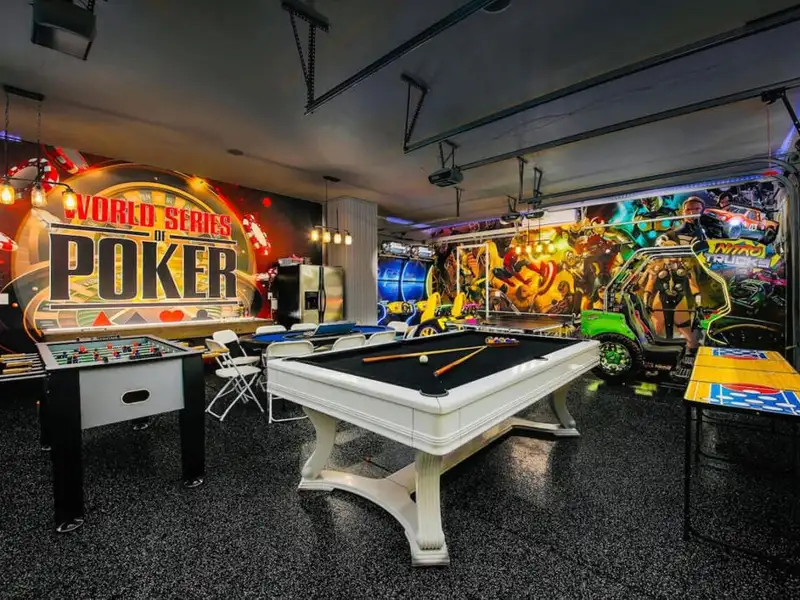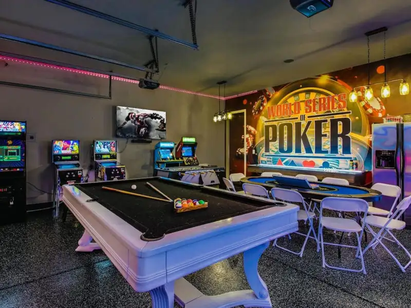 - Game room with arcade, pool, and air hockey