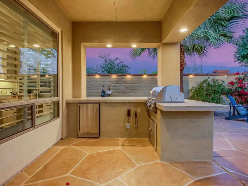 - Spacious patio with BBQ island and firepit