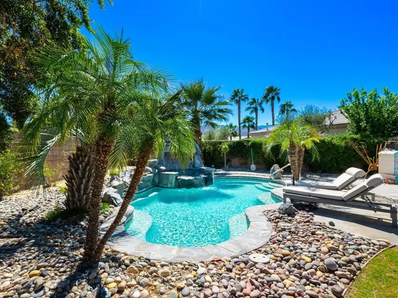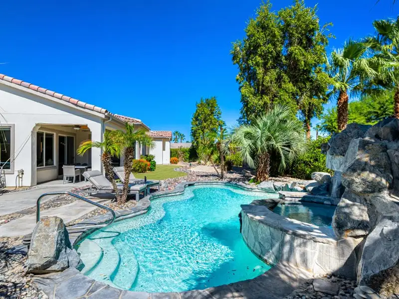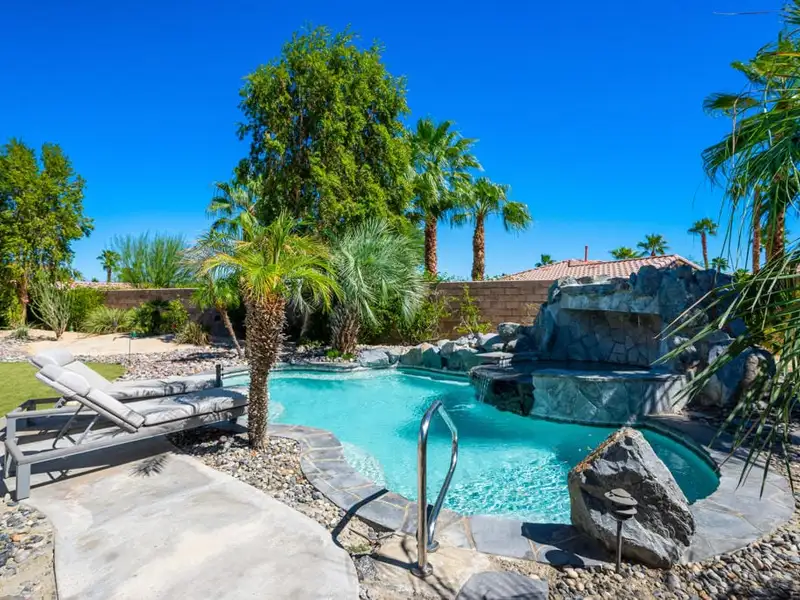 - Resort-style pool with stone waterfall