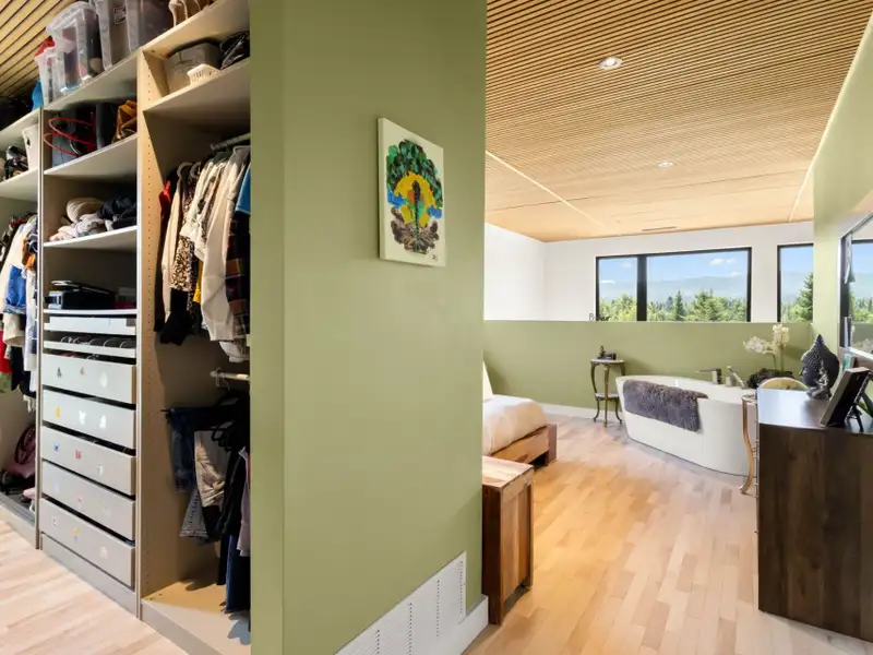 - South-facing glass facade with mountain views
